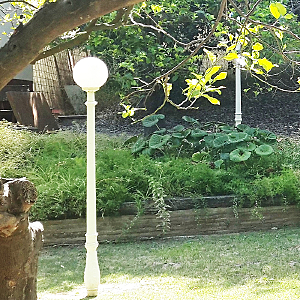 Парковый фонарь FUMAGALLI большого размера серии GLOBE 300, модель GLOBE 300/NEBO. Парковый торшер, столб NEBO с одним уличным фонарем GLOBE 300. Используются для архитектурного и ландшафтного освещения в стиле "классика". Место установки столбиков освещения - парковые дорожки, тротуары, газоны в парках и скверах, а так же ландшафтные и архитектурные объекты. Изготовлены в Италии, по уникальным технологиям "FUMAGALLI" из современного композитного полимера RESIN. Этот материал в 5 раз прочнее металла, не ржавеет, не окисляется, не выгорает на солнце, его не нужно красить. Все светильники пыле-влаго защищены по стандарту IP55 (Пыленепроницаемые, защита от водяных струй с любого направления). В комплекте идут крепежи и закладные элементы. Рассеиватель выполнен из антивандального, не мутнеющего и не горючего PMMA (ПолиМетилМетаАкрилат). Срок службы светильника - не менее 20 лет. Температура использования от -60 до +90. В серии GLOBE 300 есть фонари в настенном (BISSO/GLOBE 300, OFIR/GLOBE 300, MIRRA/GLOBE 300, PORPORA/GLOBE 300) подвесном (SICHEM/GLOBE 300) и наземном исполнении (IAFAET.R/GLOBE 300, MIZAR.R/GLOBE 300, ARTU/GLOBE 300, MIZAR.R/GLOBE 300, GIGI/GLOBE 300, RICU/ISSO/GLOBE 3002L, NEBO/GLOBE 300, NEBO OFIR/GLOBE 300 2L, NEBO OFIR/GLOBE 300 3L, TABOR ADAM/GLOBE 300 1L, TABOR ADAM/GLOBE 300 2L, TABOR OFIR/GLOBE 300 3L) со столбами разной высоты, с разным количеством и конфигурацией голов. Консоли настенных фонарей и кронштейны светильников на столбах освщения могут устанавливаться вверх/вниз. Столбы выше 150 см имеют в основе мощную стальную трубу с двойной оцинковкой. При заказе требуется выбрать цвет корпуса, цвет плафона и тип патрона. По стилю и дизайну серия уличных светильников GLOBE 300 похожа на светильники большого размера GLOBE 400 и на светильники малого размера GLOBE 250.