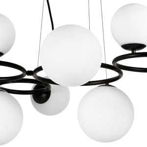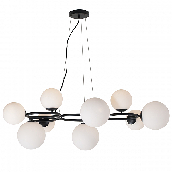 Допускается отличие страны-изготовителя, указанной в характеристиках. Линии производства могут находиться в нескольких государствах. Это не влияет на качество изготовления товара: все заводы данного бренда работают по общим стандартам, а готовые изделия проходят соответствующий контроль.Италия Коллекция Globo ЦветЦвет арматуры Матовый черный Цвет Черный Материал арматуры Металл Цвет плафона Матовый белый Материал плафона Стекло РазмерыВысота (мм) 1500 Диаметр (мм) 1100 Ширина (мм) 1100 ЭлектрикаКоличество ламп (шт) 9 Цоколь G9 Тип лампы Светодиодная, Галогеновая, Энергосберегающая (КЛЛ) Мощность лампы (Вт) 40 Общая мощность (Вт) 360 Напряжение (В) 220 Дополнительная информацияСтепень защиты (IP) IP20 Вес (Кг) 6,7 Тип подвеса На тросах -