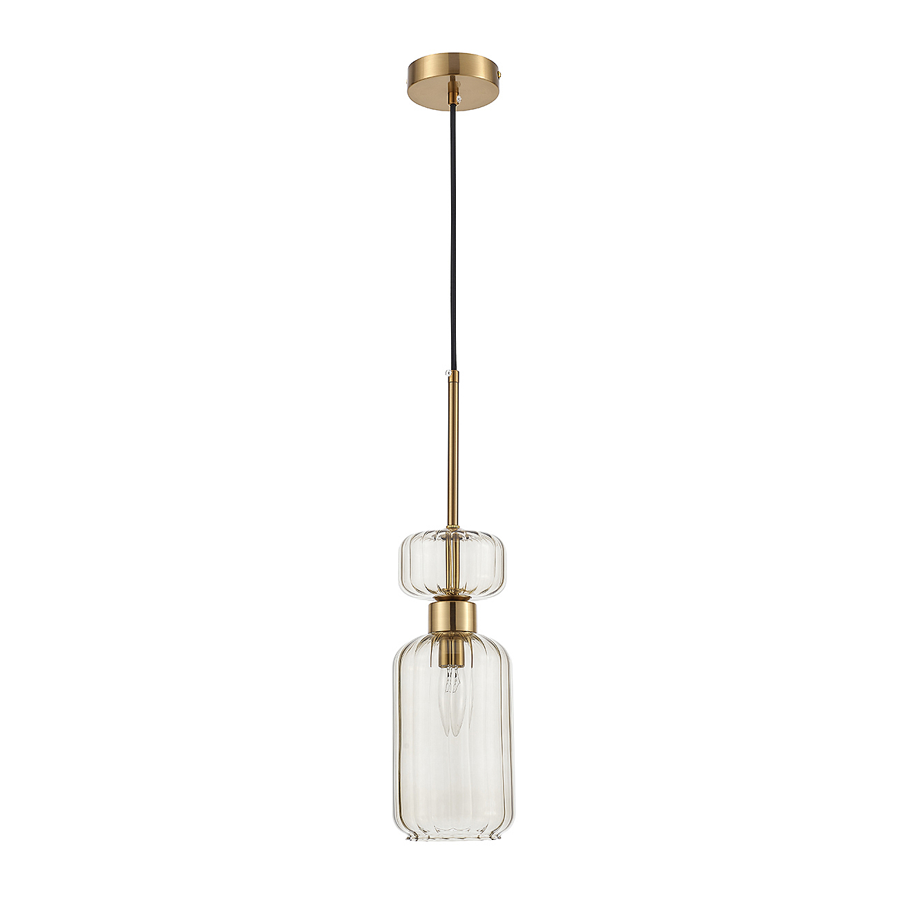Подвесной светильник 1x60Вт E14, металл/стекло, античная медь/бежевый