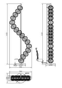 Арматура - металл, цвет - золото. Декоративные проволочные плафоны-сферы - ручная работа. Горизонтальные подвесы в двух вариантах монтажа - накладном и скрытом.Световой элемент - силиконовая трубка с LED-источником. Цветовая температура3000К.