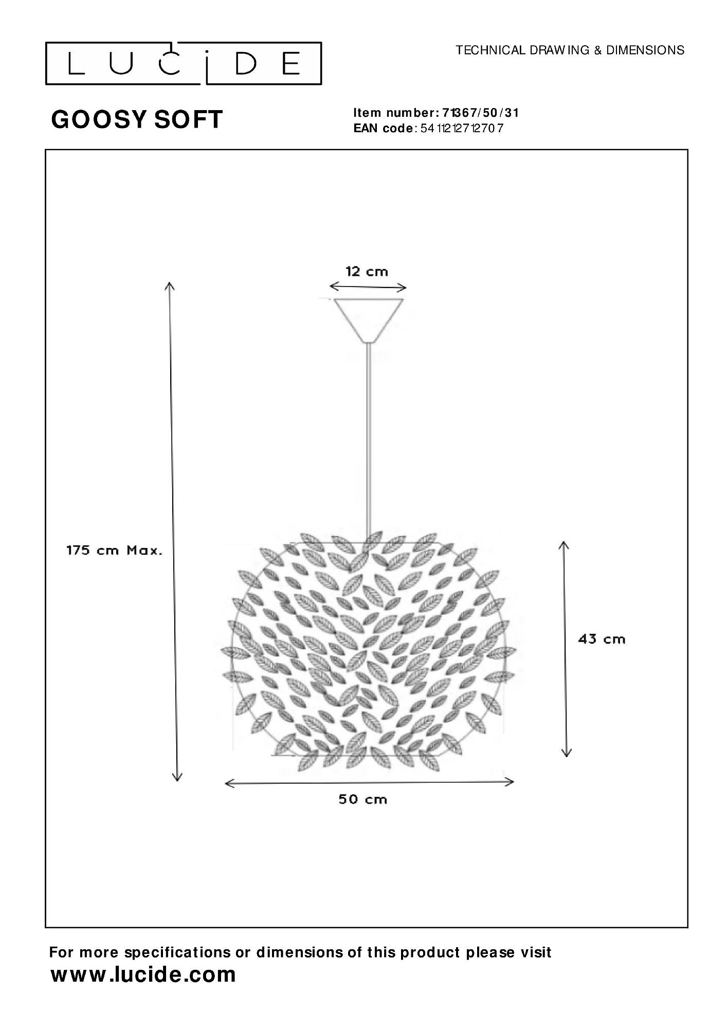 Допускается отличие страны-изготовителя, указанной в характеристиках. Линии производства могут находиться в нескольких государствах. Это не влияет на качество изготовления товара: все заводы данного бренда работают по общим стандартам, а готовые изделия проходят соответствующий контроль.Бельгия Коллекция Goosy Soft ЦветЦвет арматуры Белый Цвет Белый Материал арматуры Пластик Цвет плафона Белый Материал плафона Синтетика РазмерыВысота (мм) 1650 Длина (мм) 500 Диаметр (мм) 500 Высота минимальная (мм) 450 Ширина (мм) 500 Диаметр абажура-плафона 500 ЭлектрикаКоличество ламп (шт) 1 Цоколь E27 Лампочки в комплекте Нет в комплекте Мощность лампы (Вт) 40 Напряжение (В) 220 Дополнительная информацияСтепень защиты (IP) IP20 Диммирование Да Тип подвеса На тросах Количество подвесов Одиночный подвес -