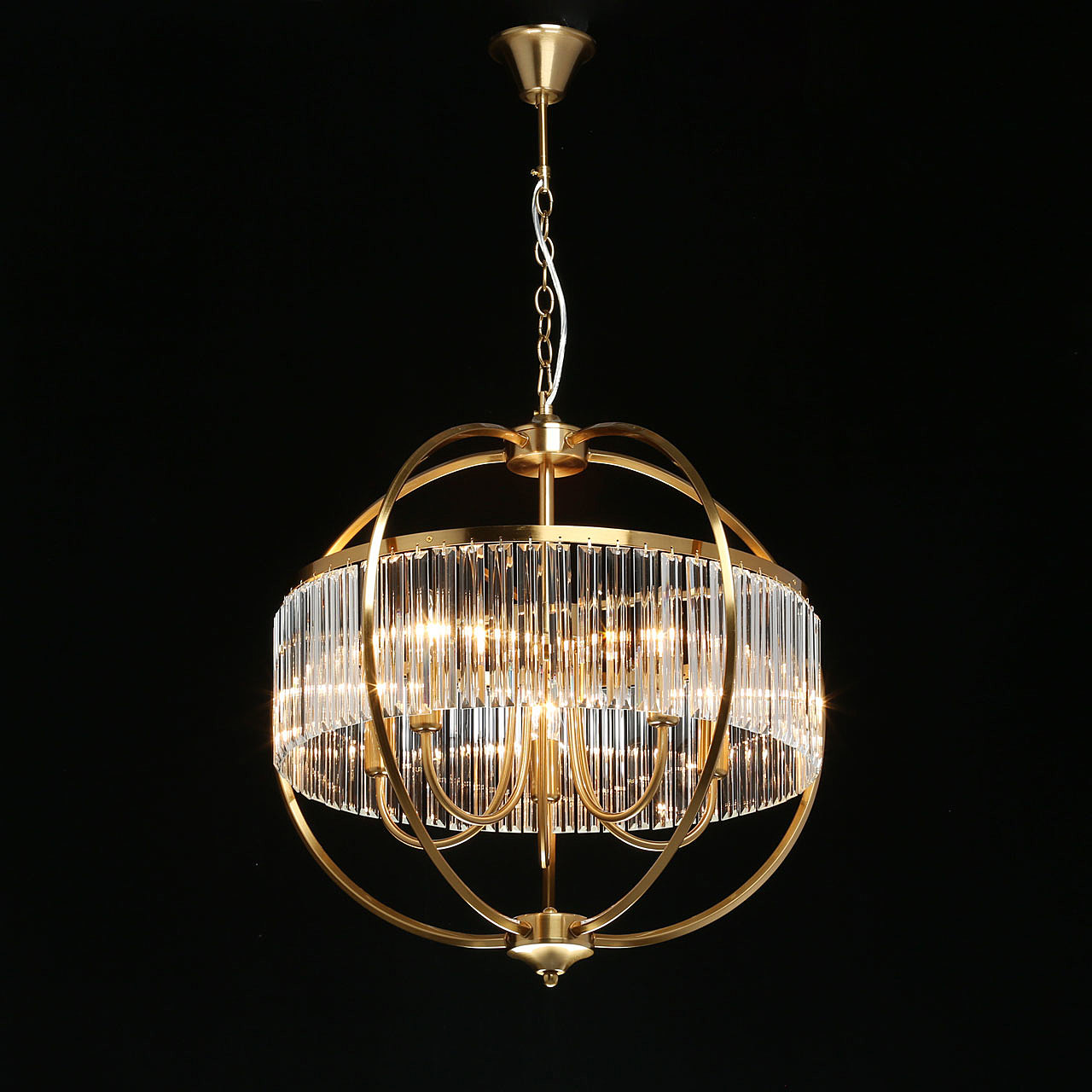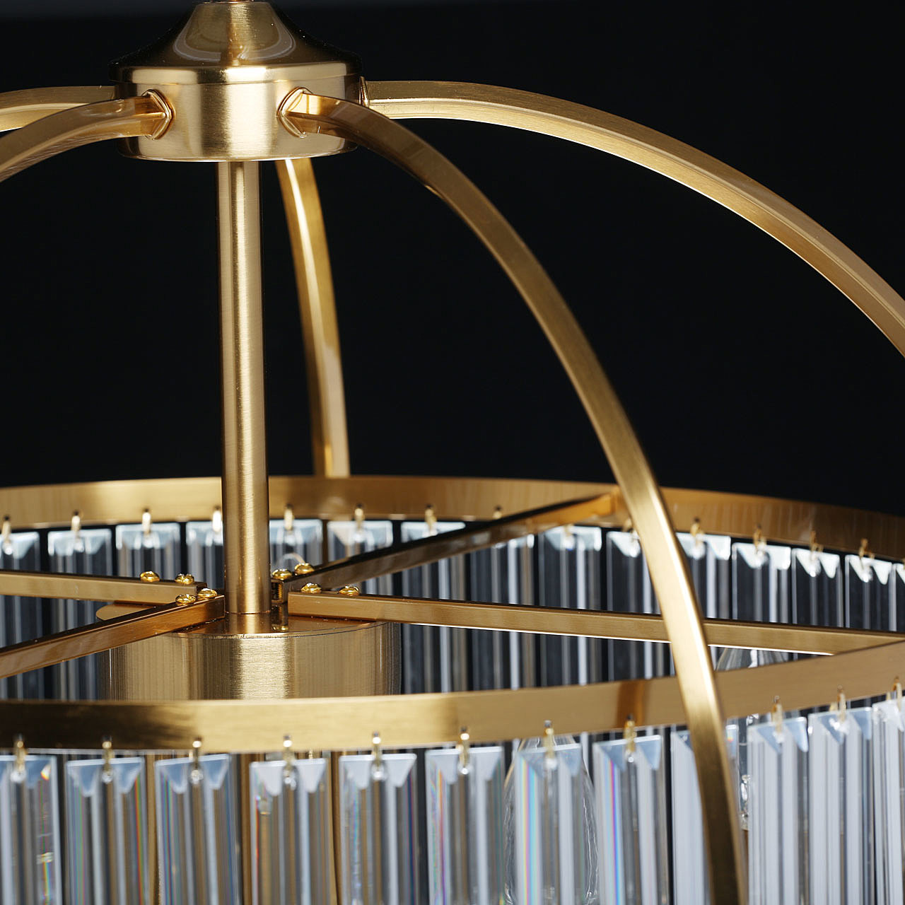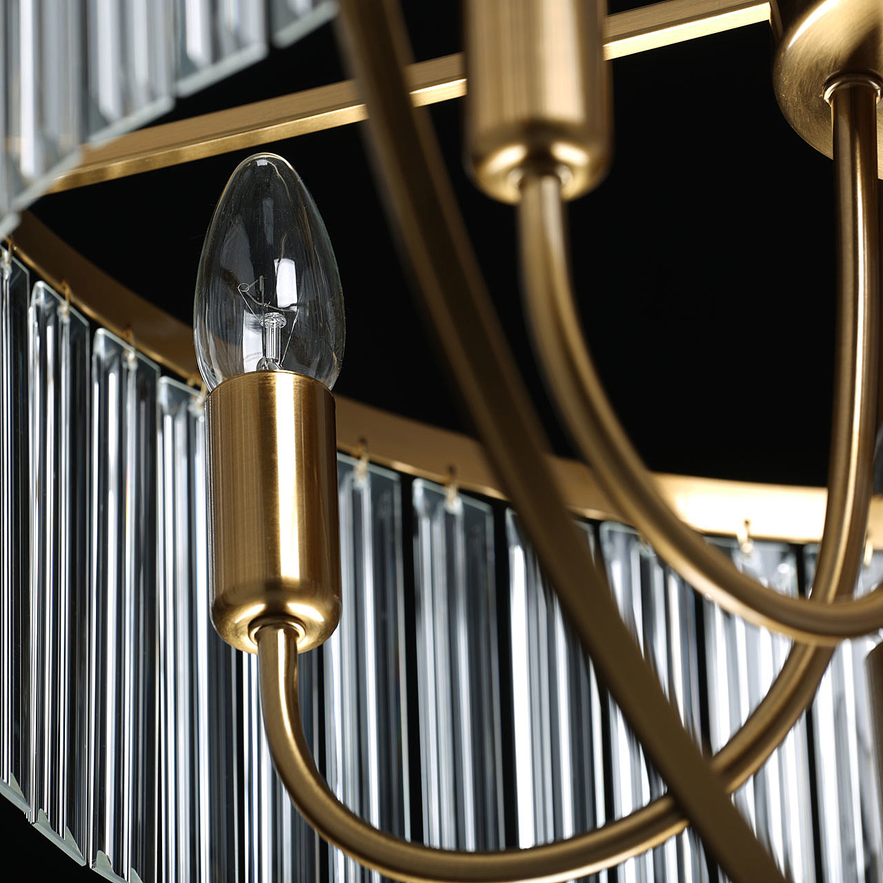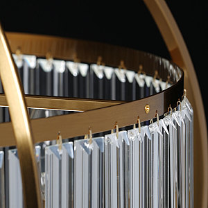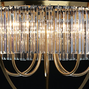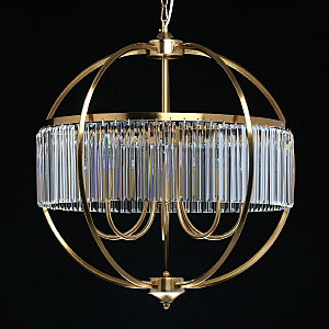 Металлическое основание светильника гальванизировано в цвет бронзы. Светильник декорирован прозрачным хрустальным стеклом.