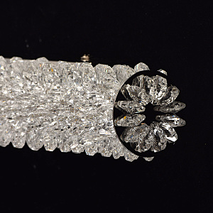 Роскошный настенный светильник из коллекции "Гослар" поражает своей утонченностью и необычной красотой. Хромированное металлическое основание дополнено зеркальным эффектом, но главная изюминка модели - оригинальный удлиненный плафон, выполненный в форме цилиндра из витых бусин прозрачного хрусталя. Светильник можно использовать в качестве элегантного настенного бра.