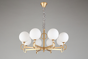Допускается отличие страны-изготовителя, указанной в характеристиках. Линии производства могут находиться в нескольких государствах. Это не влияет на качество изготовления товара: все заводы данного бренда работают по общим стандартам, а готовые изделия проходят соответствующий контроль.Польша Коллекция Gracia ЦветЦвет арматуры Золото Цвет Золото Материал арматуры Металл Цвет плафона Белый Материал плафона Стекло РазмерыВысота (мм) 1200 Диаметр (мм) 750 Высота минимальная (мм) 600 Ширина (мм) 750 ЭлектрикаКоличество ламп (шт) 8 Цоколь G9 Лампочки в комплекте Нет в комплекте Мощность лампы (Вт) 40 Общая мощность (Вт) 320 Световой поток 3360 Дополнительная информацияСпособ крепления Крюк Вес (Кг) 4.6 Тип подвеса На цепи -