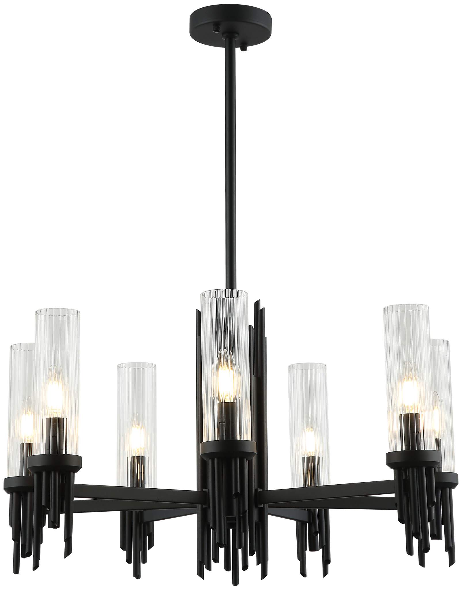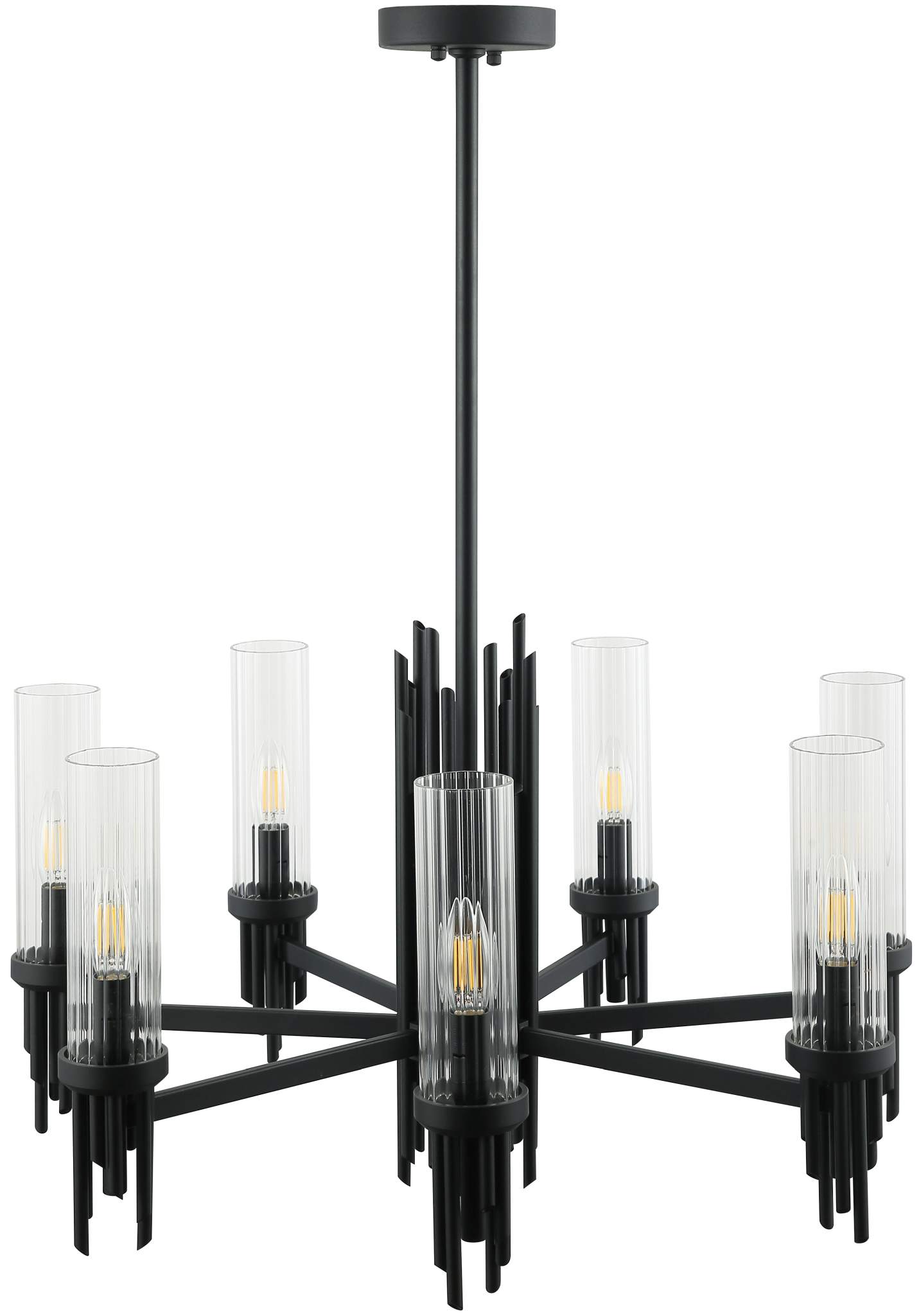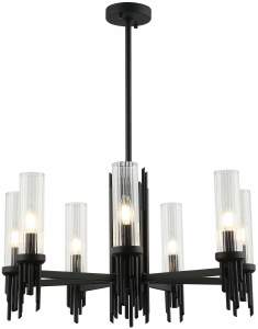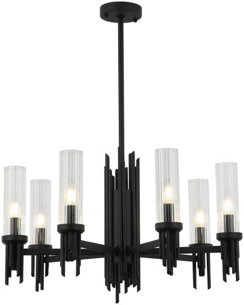 Люстра на штанге из коллекции Graff выполнена из металла, окрашенного в черный цвет, и декорирована плафонами из прозрачного стекла с линейным рисунком и железными стержнями, окрашенными в цвет арматуры. Благодаря широкой арматуре люстра выглядит стильно и респектабельно. Премиальное качество и неповторимыи? дизаи?н светильников идеально подои?дут как в классические, так и современные дизайнерские интерьеры.