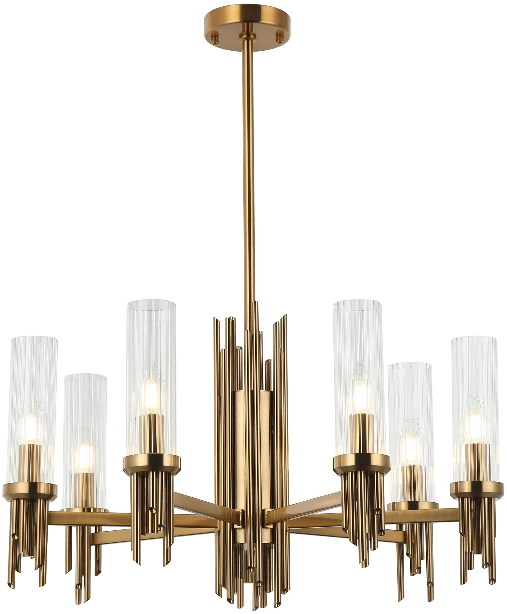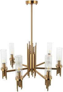 Люстра на штанге из коллекции Graff выполнена из металла, гальванизированного в цвет бронзы, и декорирована плафонами из прозрачного стекла с линейным рисунком и железными стержнями, гальванизированными в цвет арматуры. Благодаря широкой арматуре люстра выглядит стильно и респектабельно. Премиальное качество и неповторимыи? дизаи?н светильников идеально подои?дут как в классические, так и современные дизайнерские интерьеры.