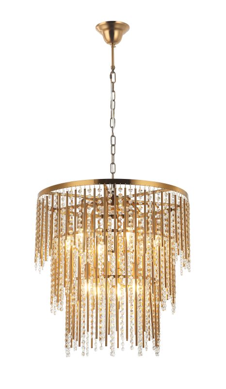 Люстра подвесная из коллекции Grandex выполнена из металла, гальванизированного в цвет бронзы, и декорирована бусами из прозрачного хрусталя высшей категории в форме октагон и металлическими трубочками, гальванизированными в цвет арматуры. Люстра коллекции выглядит стильно и респектабельно.