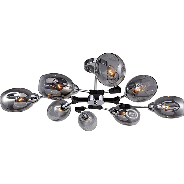 Люстра потолочная на штанге 2112/09/08C Stilfort серии Grape - модель с оригинальным дизайном в стиле модерн. Арматура изготовлена из окрашенного металла в цвете хром. Плафоны люстры выполнены из прозрачного стекла с серым оттенком.