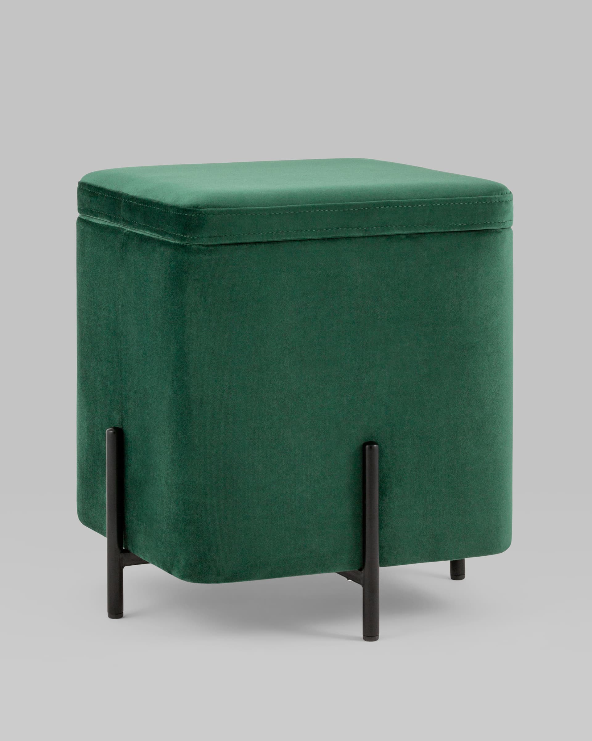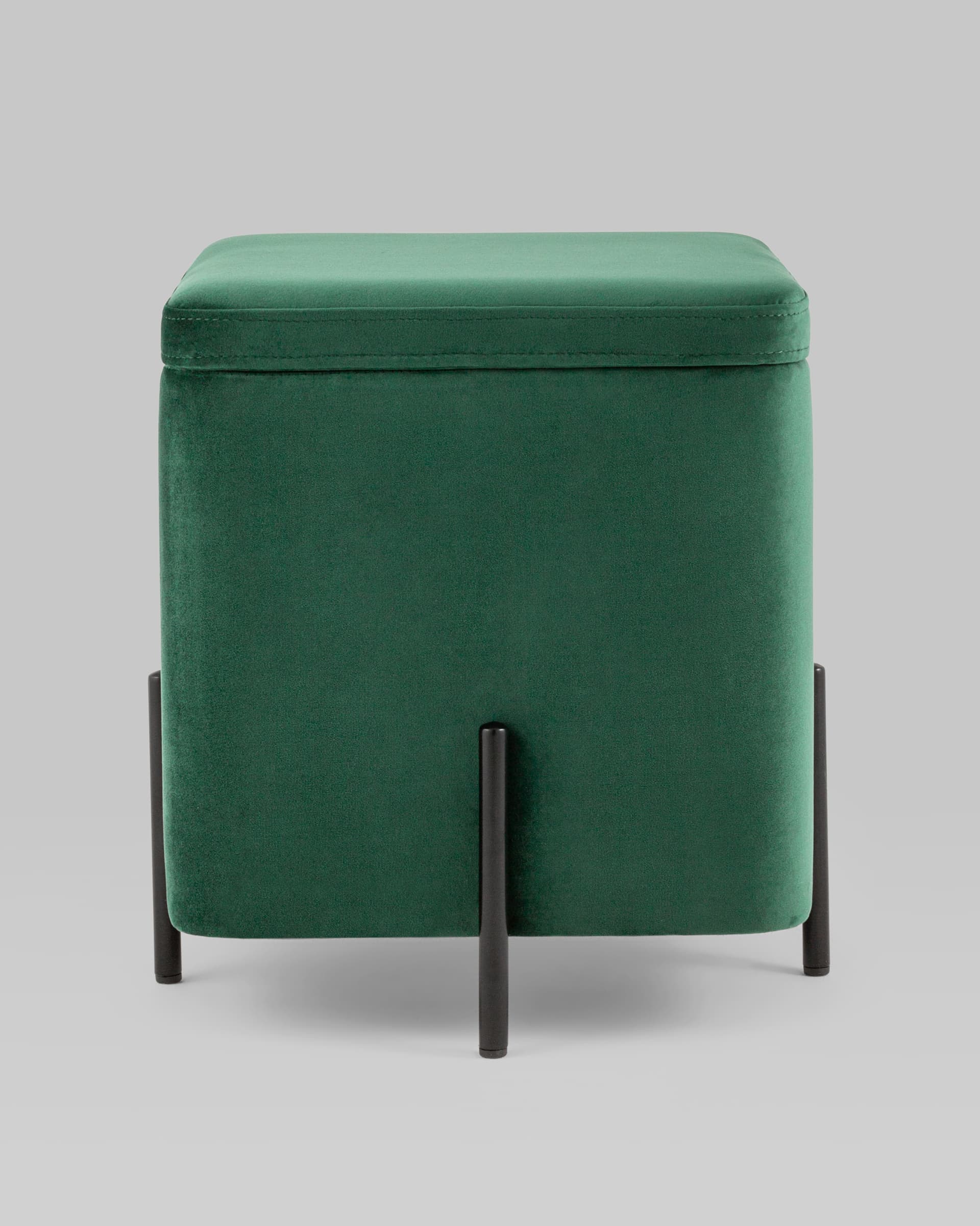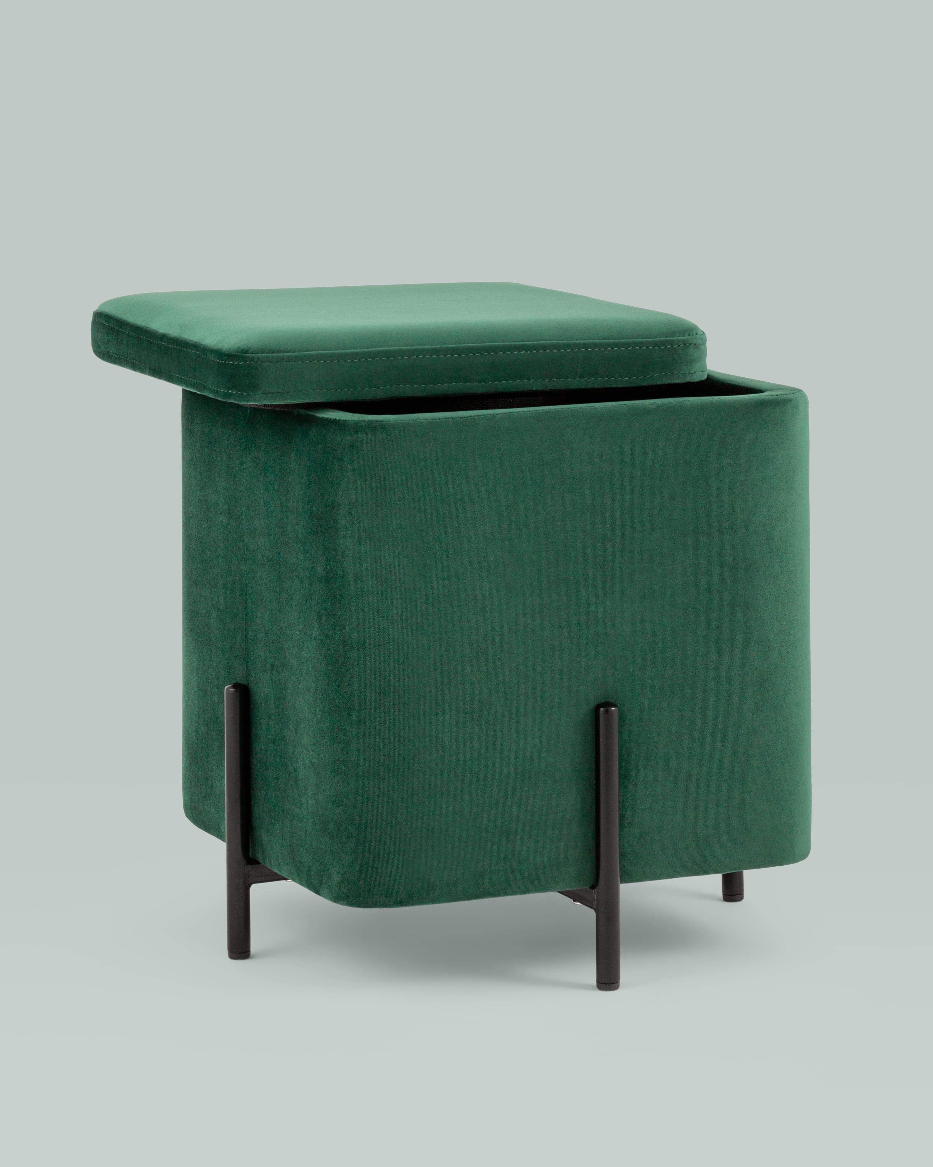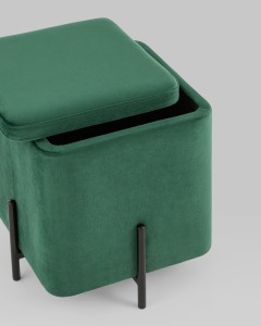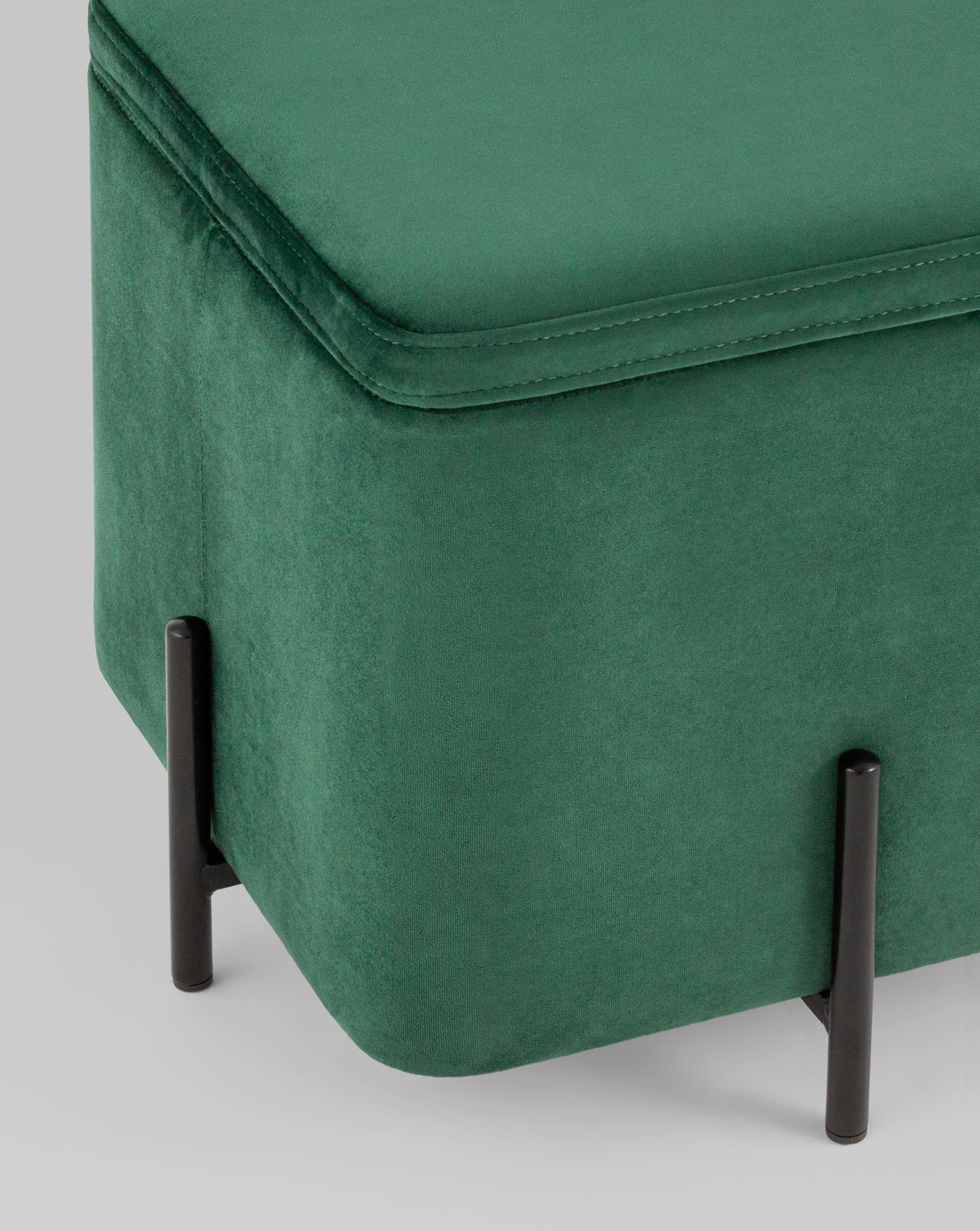 Пуф Грейс квадрат с ящиком велюр зелёный ножки металл