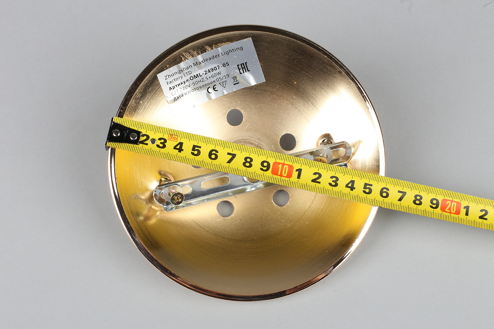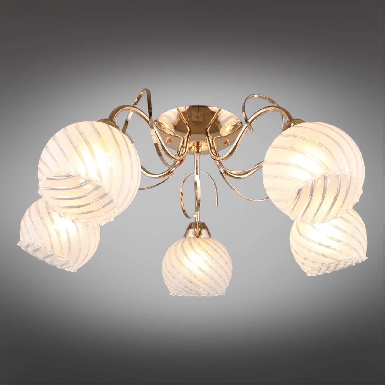 Допускается отличие страны-изготовителя, указанной в характеристиках. Линии производства могут находиться в нескольких государствах. Это не влияет на качество изготовления товара: все заводы данного бренда работают по общим стандартам, а готовые изделия проходят соответствующий контроль.Китай Коллекция Grosotto ЦветЦвет арматуры Золото Цвет Золото Материал арматуры Металл Цвет плафона Белый Материал плафона Стекло РазмерыВысота (мм) 240 Диаметр (мм) 640 Ширина (мм) 640 ЭлектрикаКоличество ламп (шт) 5 Цоколь E27 Лампочки в комплекте Нет в комплекте Мощность лампы (Вт) 60 Общая мощность (Вт) 300 Напряжение (В) 220 Световой поток 3150 Дополнительная информацияСпособ крепления Планка Вес (Кг) 1.6 -