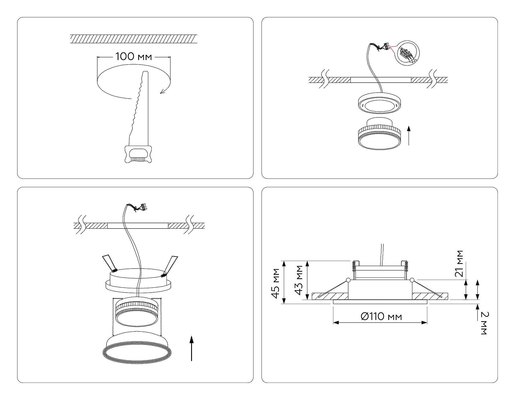 Допускается отличие страны-изготовителя, указанной в характеристиках. Линии производства могут находиться в нескольких государствах. Это не влияет на качество изготовления товара: все заводы данного бренда работают по общим стандартам, а готовые изделия проходят соответствующий контроль.Россия Коллекция GX Standard tech ЦветЦвет арматуры Белый Цвет Белый Материал арматуры Металл РазмерыВысота (мм) 23 Диаметр (мм) 110 Ширина (мм) 110 Высота врезного отверствия (мм) 43 Диаметр врезного отверстия (мм) 100 ЭлектрикаКоличество ламп (шт) 1 Цоколь GX53 Тип лампы Светодиодная Лампочки в комплекте Нет в комплекте Мощность лампы (Вт) 15 Напряжение (В) 220 Дополнительная информацияСтепень защиты (IP) IP20 -