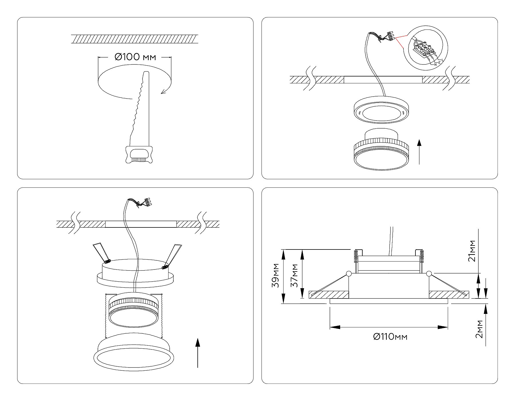 Допускается отличие страны-изготовителя, указанной в характеристиках. Линии производства могут находиться в нескольких государствах. Это не влияет на качество изготовления товара: все заводы данного бренда работают по общим стандартам, а готовые изделия проходят соответствующий контроль.Россия Коллекция GX Standard tech ЦветЦвет арматуры Белый Цвет Белый Материал арматуры Металл РазмерыВысота (мм) 39 Диаметр (мм) 110 Ширина (мм) 110 Высота врезного отверствия (мм) 37 Диаметр врезного отверстия (мм) 100 ЭлектрикаКоличество ламп (шт) 1 Цоколь GX53 Тип лампы Светодиодная Лампочки в комплекте Нет в комплекте Мощность лампы (Вт) 15 Напряжение (В) 220 Дополнительная информацияСтепень защиты (IP) IP20 -