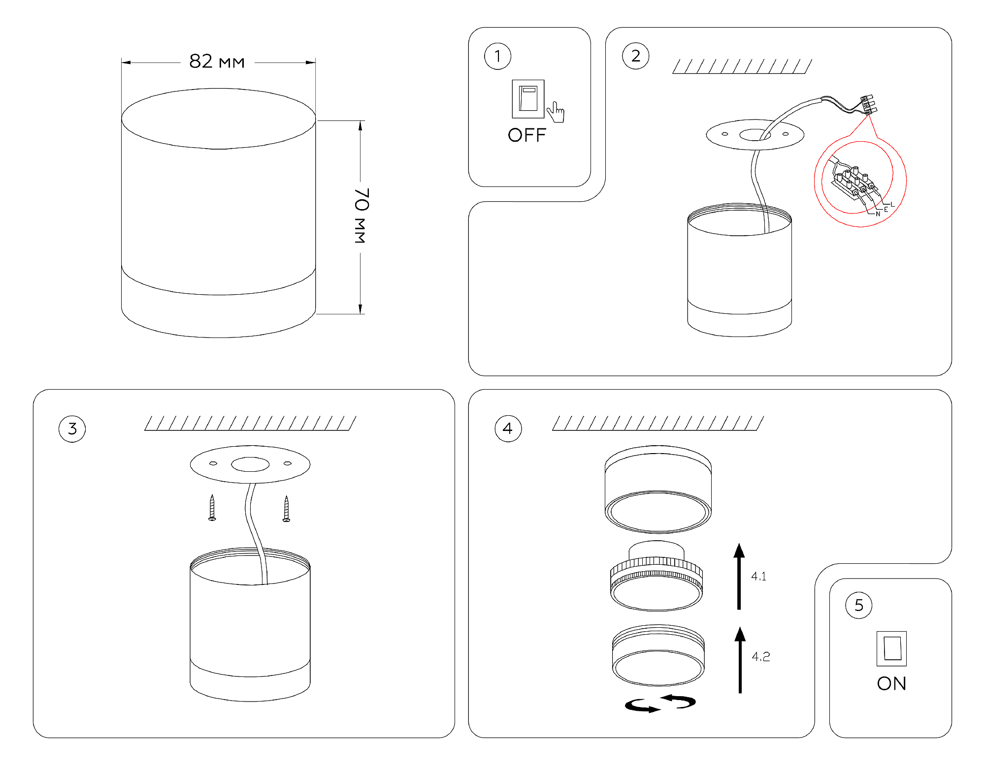 Допускается отличие страны-изготовителя, указанной в характеристиках. Линии производства могут находиться в нескольких государствах. Это не влияет на качество изготовления товара: все заводы данного бренда работают по общим стандартам, а готовые изделия проходят соответствующий контроль.Россия Коллекция GX Standard tech ЦветЦвет арматуры Черный Цвет Черный Материал арматуры Металл РазмерыВысота (мм) 70 Диаметр (мм) 82 Ширина (мм) 82 ЭлектрикаКоличество ламп (шт) 1 Цоколь GX53 Тип лампы Светодиодная Мощность лампы (Вт) 12 Напряжение (В) 220 Дополнительная информацияСтепень защиты (IP) IP20 -