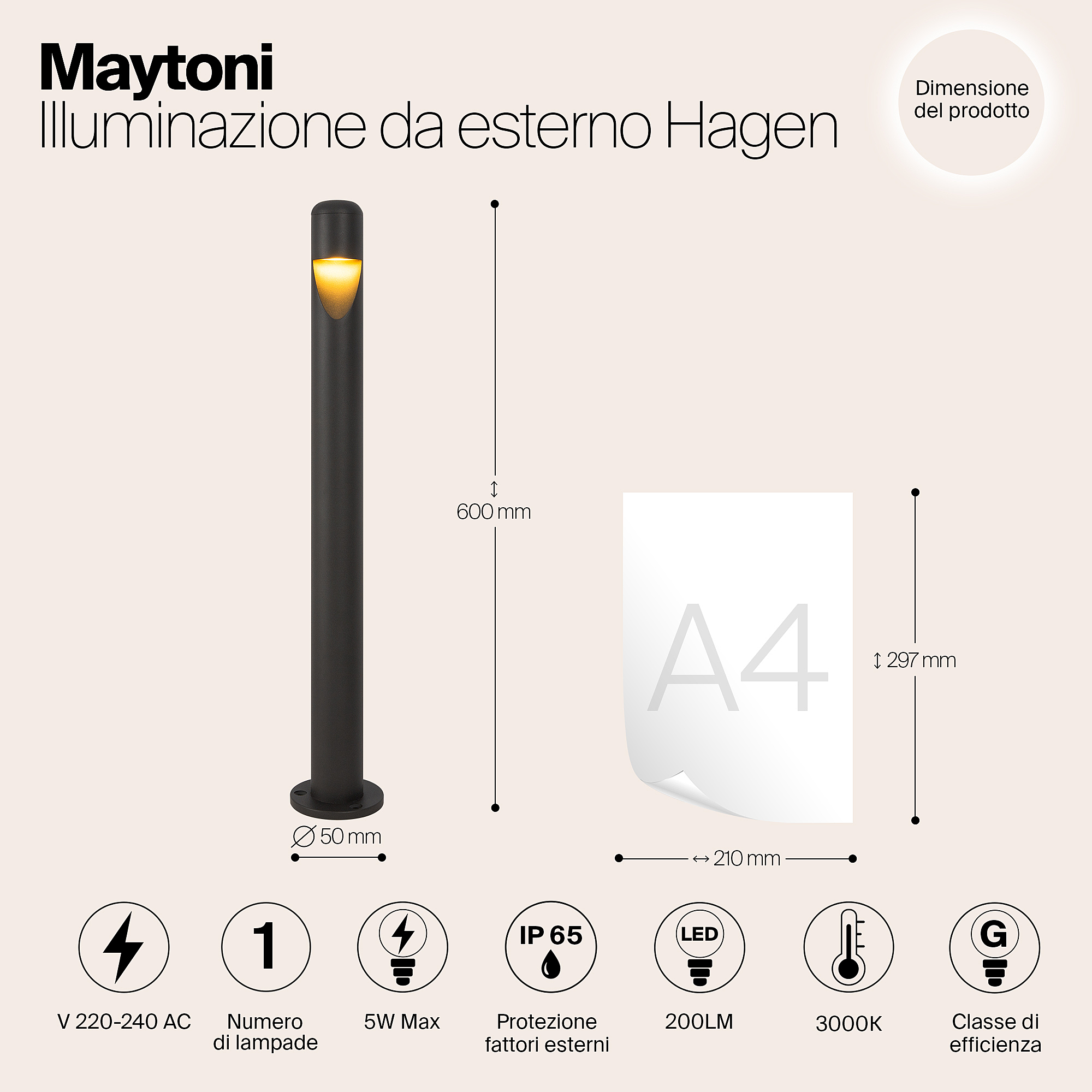 Допускается отличие страны-изготовителя, указанной в характеристиках. Линии производства могут находиться в нескольких государствах. Это не влияет на качество изготовления товара: все заводы данного бренда работают по общим стандартам, а готовые изделия проходят соответствующий контроль.Германия Коллекция Hagen ЦветЦвет арматуры графит Цвет Серый Материал арматуры Металл РазмерыВысота (мм) 600 Диаметр (мм) 50 Ширина (мм) 50 ЭлектрикаКоличество ламп (шт) 1 Цоколь LED Тип лампы Светодиодная Лампочки в комплекте Нет в комплекте Мощность лампы (Вт) 5 Напряжение (В) 220 Световой поток 200 Цветовая температура 3000 Дополнительная информацияСтепень защиты (IP) IP65 Вес (Кг) 1,02 Техническая оссобеность Полностью светодиодная -