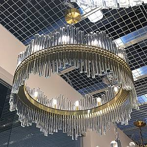 Допускается отличие страны-изготовителя, указанной в характеристиках. Линии производства могут находиться в нескольких государствах. Это не влияет на качество изготовления товара: все заводы данного бренда работают по общим стандартам, а готовые изделия проходят соответствующий контроль.Россия Коллекция Haydn ЦветЦвет арматуры золото блестящее Цвет Золото Материал арматуры Металл РазмерыВысота (мм) 680 Диаметр (мм) 800 Высота минимальная (мм) 430 Ширина (мм) 800 ЭлектрикаКоличество ламп (шт) 18 Цоколь G9, E27 Тип лампы Светодиодная Мощность лампы (Вт) 5 Дополнительная информацияТип подвеса На тросах -