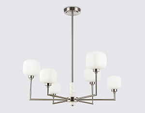 Люстра на штанге с мрамором из коллекции HIGH LIGHT. Модель LH53001 представлена в стиле неоклассика. Люстра выполнена из плафонов белого матового стекла, металлического каркаса цвета сатин никель и декорирована элементами из мрамора. Для данной модели подойдут лампы с цоколем G9. Люстра будет прекрасным дополнением в любом помещении.
