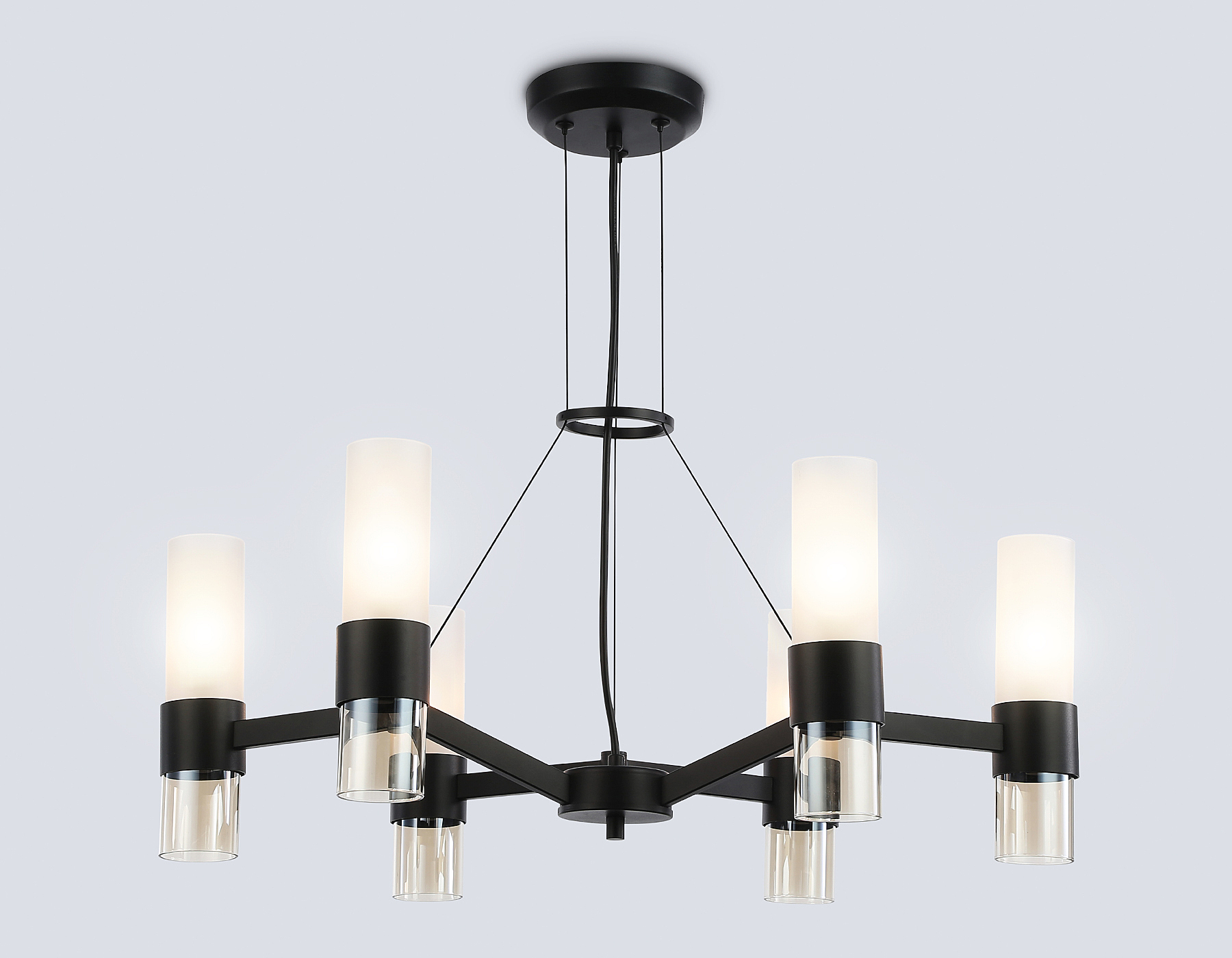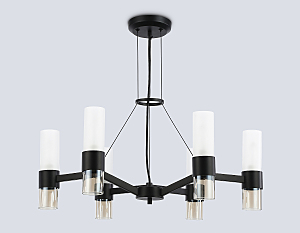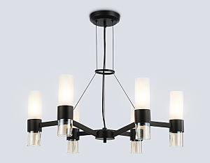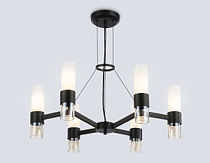 Подвесная люстра из коллекции HIGH LIGHT. Модель LH55104 представлена в стиле модерн. Люстра выполнена из стеклянных плафонов, белого матового и прозрачного янтарного цветов, и металлического каркаса черного цвета. Для данной модели подойдут лампы с цоколем Е14. Люстра будет прекрасным дополнением в любом помещении.