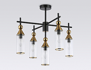 Люстра на штанге из коллекции HIGH LIGHT. Модель LH55256 представлена в стиле модерн. Люстра выполнена из стеклянных прозрачных плафонов, металлического каркаса черного цвета и цвета латунь. Для данной модели подойдут лампы с цоколем Е14. Люстра будет прекрасным дополнением в любом помещении.