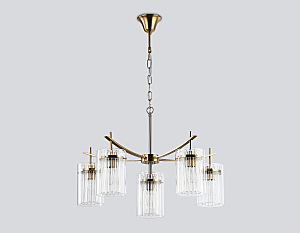 Подвесная люстра из коллекции HIGH LIGHT. Модель LH56031 представлена в стиле модерн. Люстра выполнена из прозрачных плафонов и металлического каркаса цвета латунь. Для данной модели подойдут лампы с цоколем Е14. Люстра будет прекрасным дополнением в любом помещении.
