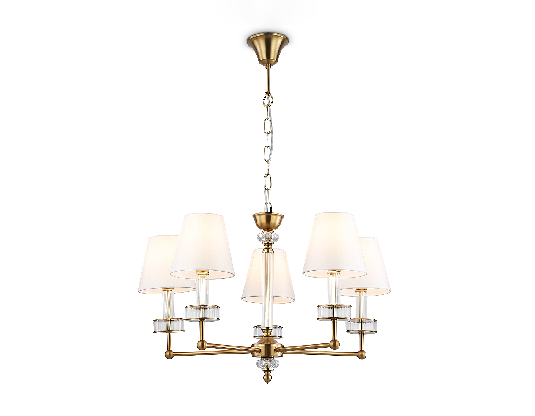 Допускается отличие страны-изготовителя, указанной в характеристиках. Линии производства могут находиться в нескольких государствах. Это не влияет на качество изготовления товара: все заводы данного бренда работают по общим стандартам, а готовые изделия проходят соответствующий контроль.Россия Коллекция Heigh Light ЦветЦвет арматуры Латунь Цвет Латунь Материал арматуры Металл, Стекло, Хрусталь Цвет декора прозрачный Цвет плафона Белый Материал декора Хрусталь, Стекло Материал плафона Ткань РазмерыВысота (мм) 1130 Диаметр (мм) 670 Высота минимальная (мм) 440 Диаметр основания 80 ЭлектрикаКоличество ламп (шт) 5 Цоколь E14 Мощность лампы (Вт) 40 Напряжение (В) 220 Площадь освещения 18 Дополнительная информацияСпособ крепления Крюк Степень защиты (IP) IP20 Тип подвеса На цепи -