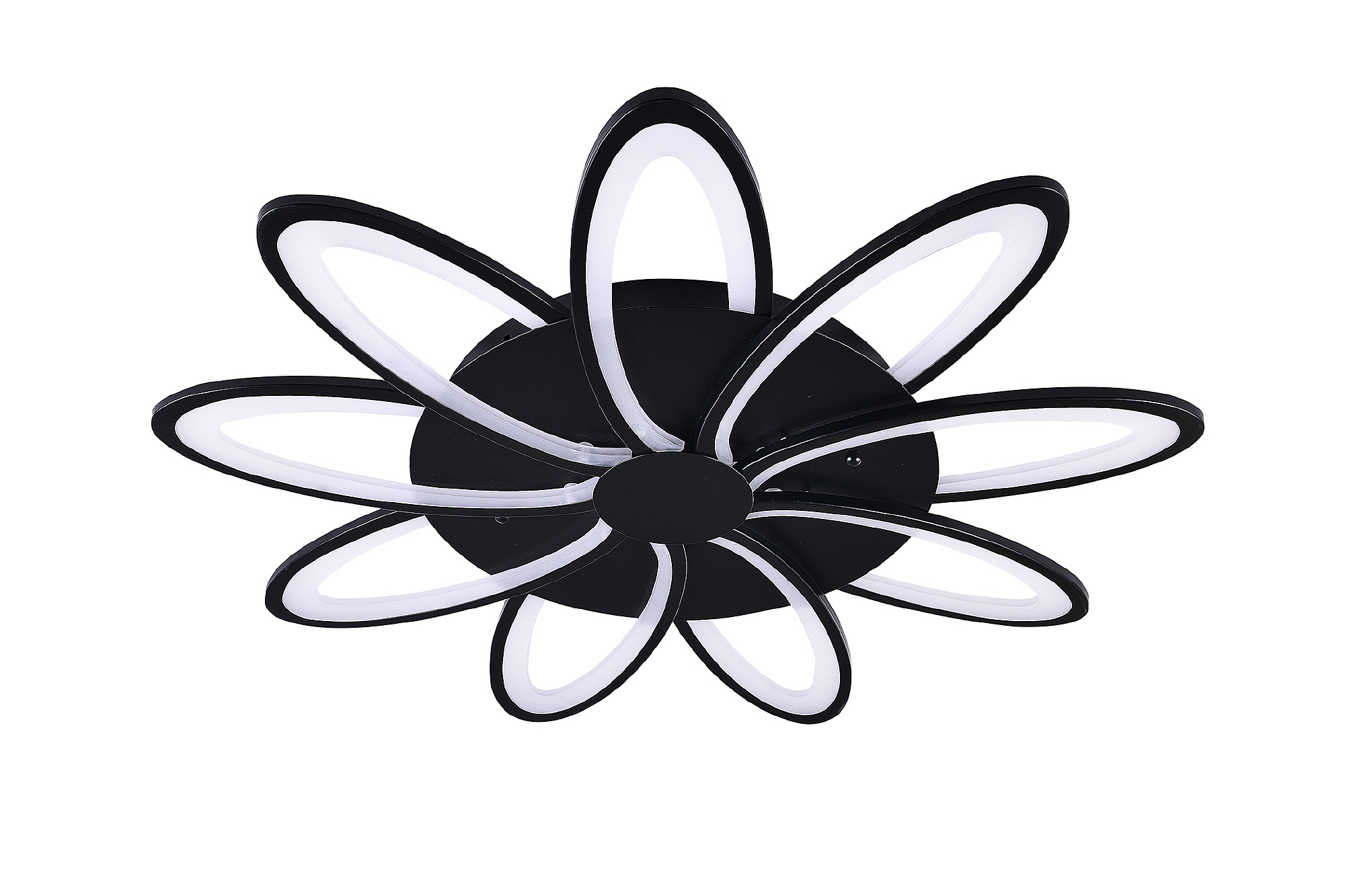Светодиодный светильник с дистанционным управлением через пульт ДУ, смартфон, планшет. Лицевую часть составляют равноудалённые друг от друга рожки с симметричным дизайнерским узором. По их периметру расположена подсветка, а акрил обеспечивает отличное рассеивание света. Дизайн люстры выполнен в современном стиле в чёрном цвете и отлично подойдёт в любой интерьер. Люстра имеет тёплый, естественный и холодный свет с регулировкой температуры свечения. Обладает плавной настройкой яркости в диапазоне от 10% до 100%. Имеется режим ночника и таймер отключения. Кроме того, от стандартного выключателя люстра имеет 4 режима свечения. Данные функции делают светильник оптимальным в процессе использования. Общая мощность 200W со световым потоком 16200 lm позволяет осветить до 28 кв.м. Он прост в сборке, установке и экономичен в обслуживании. Светодиоды легко заменимы в случае перегорания. Люстра подойдёт для всех видов потолков. Цветовая температура настраивается от 2700 до 7000 K. Степень защиты 20 IP.