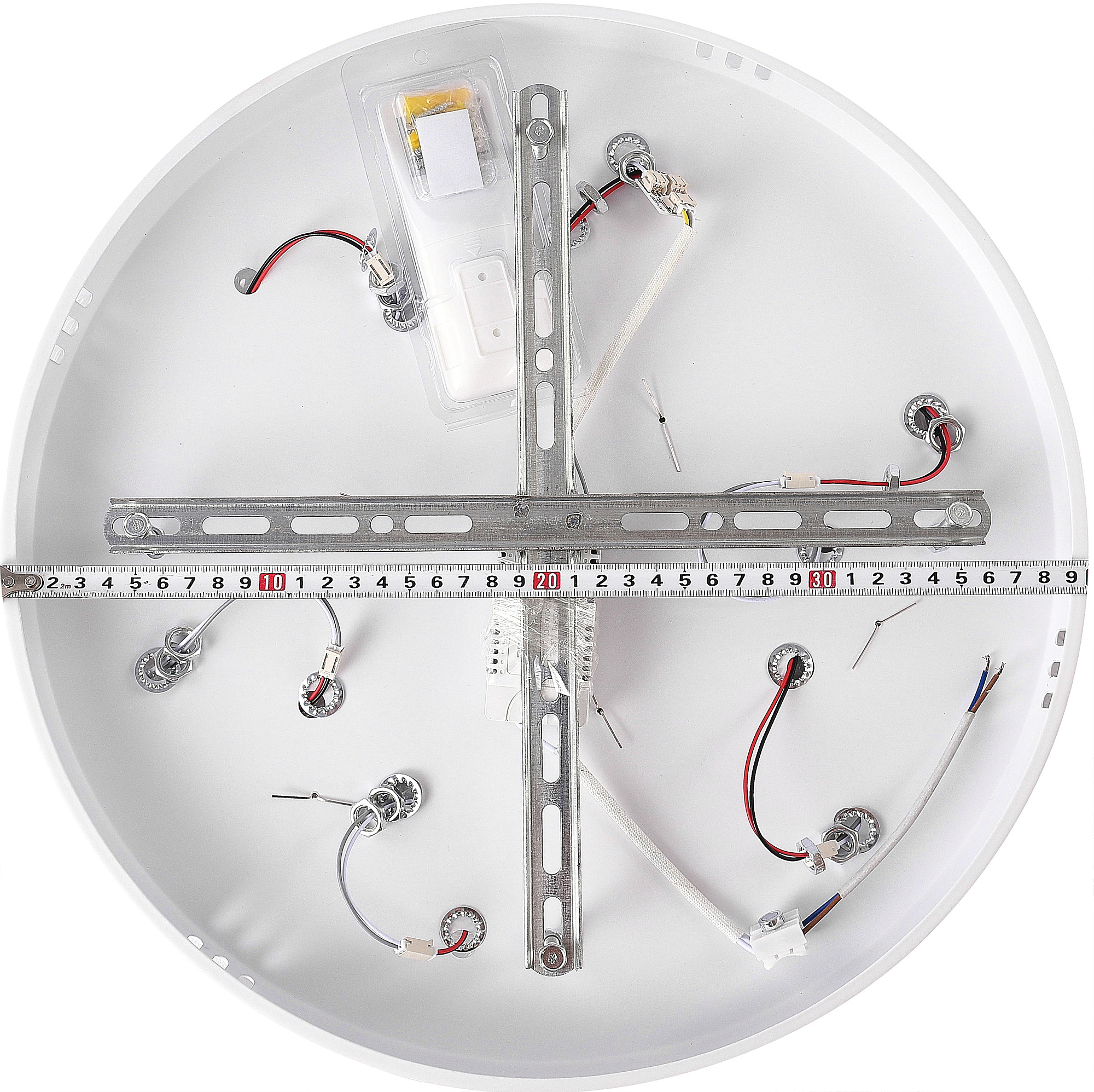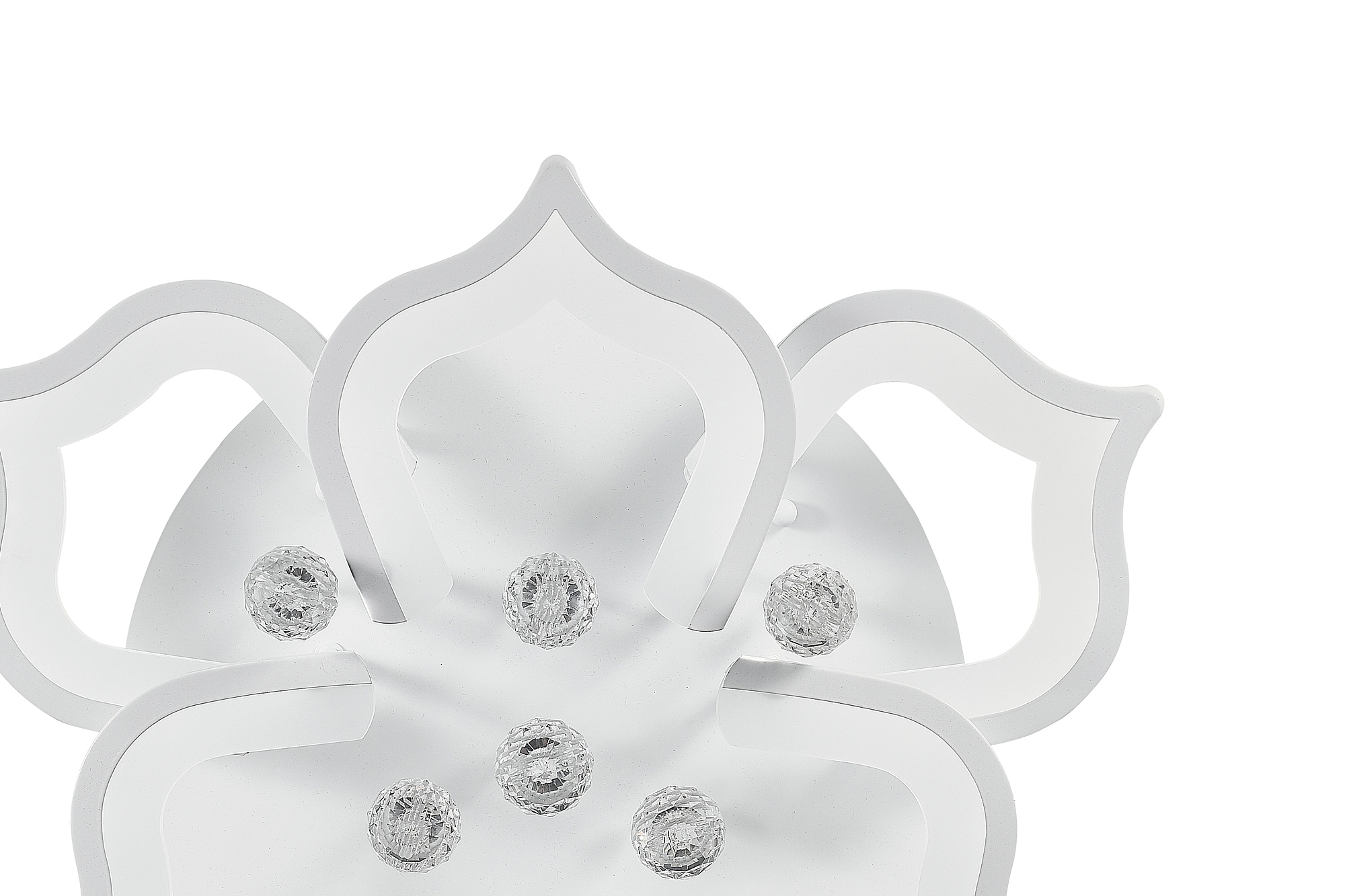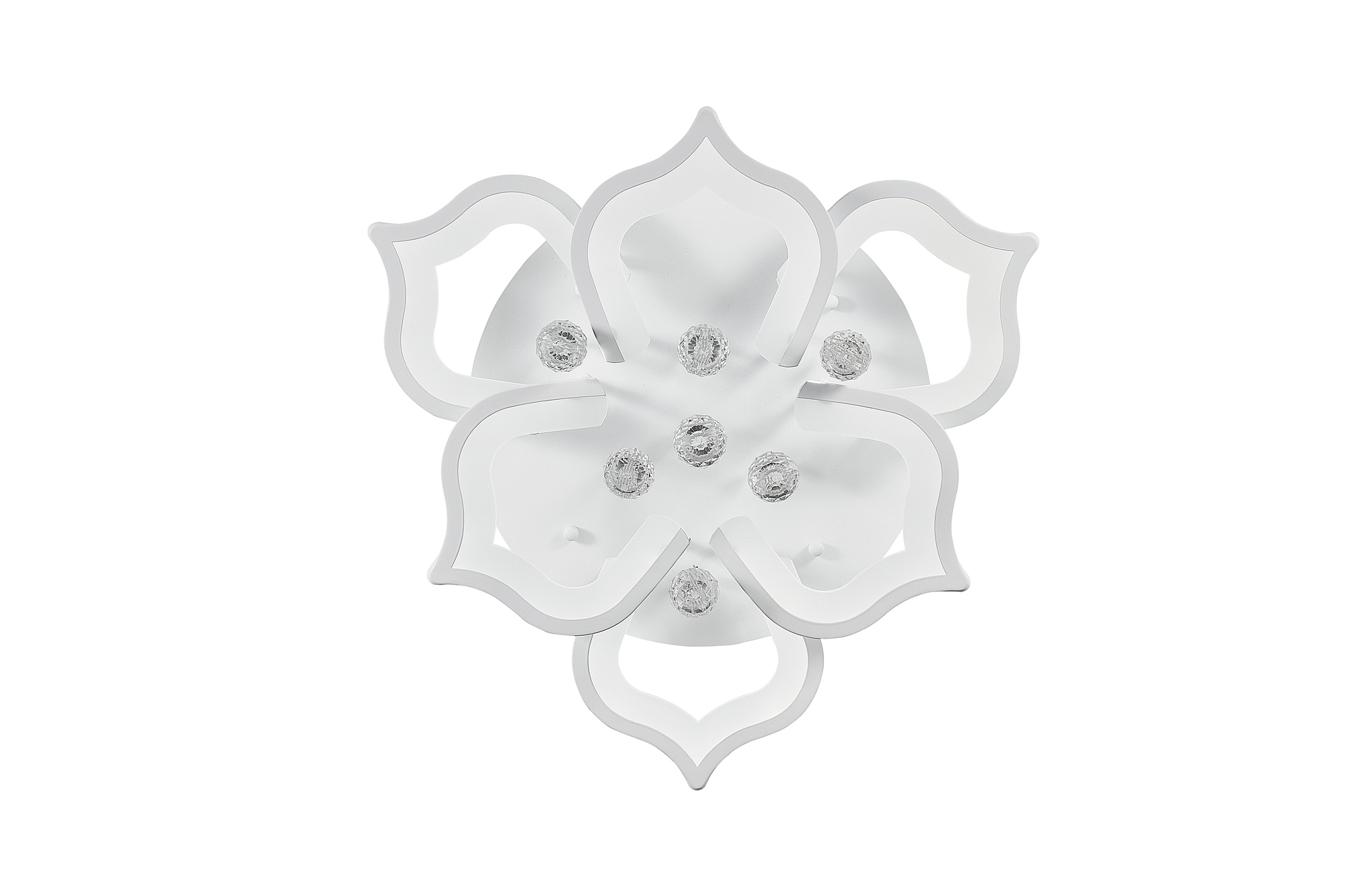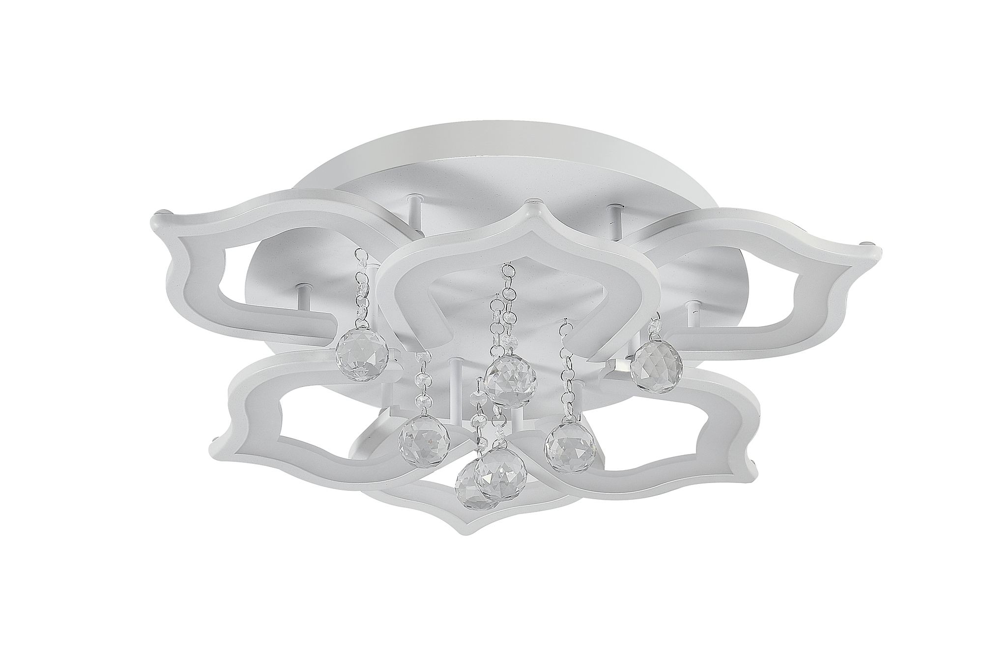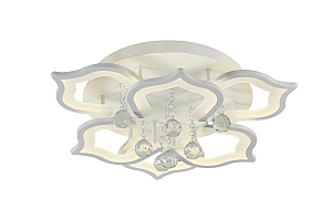 Светодиодный светильник с дистанционным управлением через пульт ДУ, смартфон, планшет. Лицевую часть составляют равноудалённые друг от друга рожки с симметричным дизайнерским узором, выполненные из акрила и располагающиеся на двух уровнях. Это обеспечивает отличное и равномерное рассеивание света. Стеклянные подвески эффектно преломляют свет, дополняя данную модель. Дизайн люстры выполнен в современном стиле в белом цвете и отлично подойдёт в любой интерьер. Люстра имеет тёплый, естественный и холодный свет с регулировкой температуры свечения. Обладает плавной настройкой яркости в диапазоне от 10% до 100%. Имеется режим ночника и таймер отключения. Кроме того, от стандартного выключателя люстра имеет 4 режима свечения. Данные функции делают светильник оптимальным в процессе использования. Общая мощность 100W со световым потоком 8000 lm позволяет осветить до 19 кв.м. Он прост в сборке, установке и экономичен в обслуживании. Светодиоды легко заменимы в случае перегорания. Люстра подойдёт для всех видов потолков. Цветовая температура настраивается от 2700 до 7000 K. Степень защиты 20 IP.