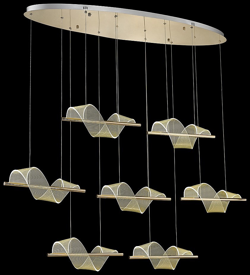 Допускается отличие страны-изготовителя, указанной в характеристиках. Линии производства могут находиться в нескольких государствах. Это не влияет на качество изготовления товара: все заводы данного бренда работают по общим стандартам, а готовые изделия проходят соответствующий контроль.Италия Коллекция Hilda ЦветЦвет арматуры Золото Цвет Золото Материал арматуры Металл Цвет плафона прозрачный Материал плафона Акрил РазмерыВысота (мм) 1500 Длина (мм) 1500 Высота минимальная (мм) 1500 Ширина (мм) 470 ЭлектрикаКоличество ламп (шт) 7 Цоколь LED Мощность лампы (Вт) 14 Напряжение (В) 220 Цветовая температура 3200 Площадь освещения 34 Дополнительная информацияСпособ крепления Планка Степень защиты (IP) IP20 Тип подвеса На тросах -