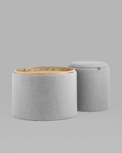 Пуф с ящиком Хюгге S рогожка серый двухсторонняя крышка