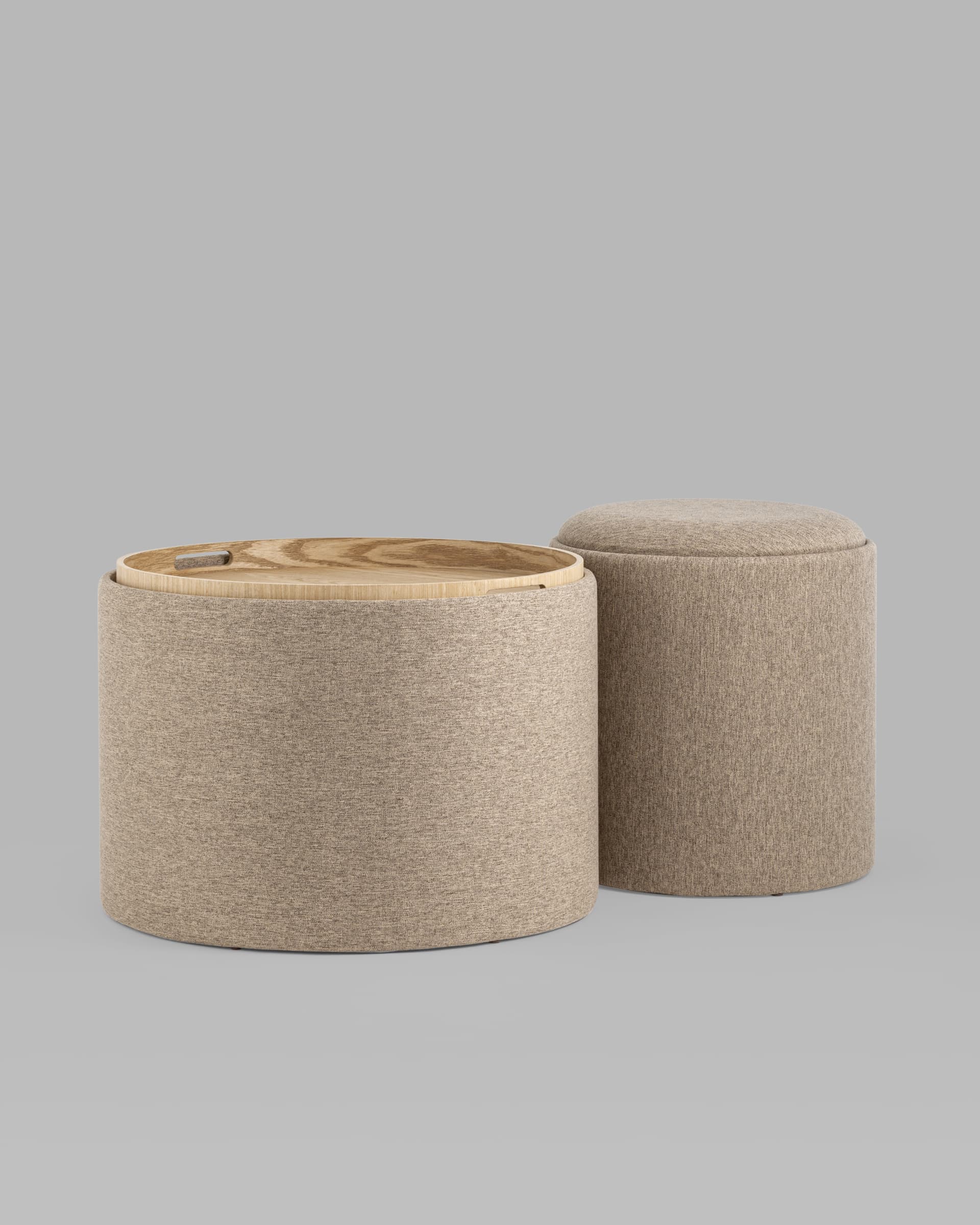 Пуф с ящиком Хюгге S рогожка бежевый двухстороння крышка