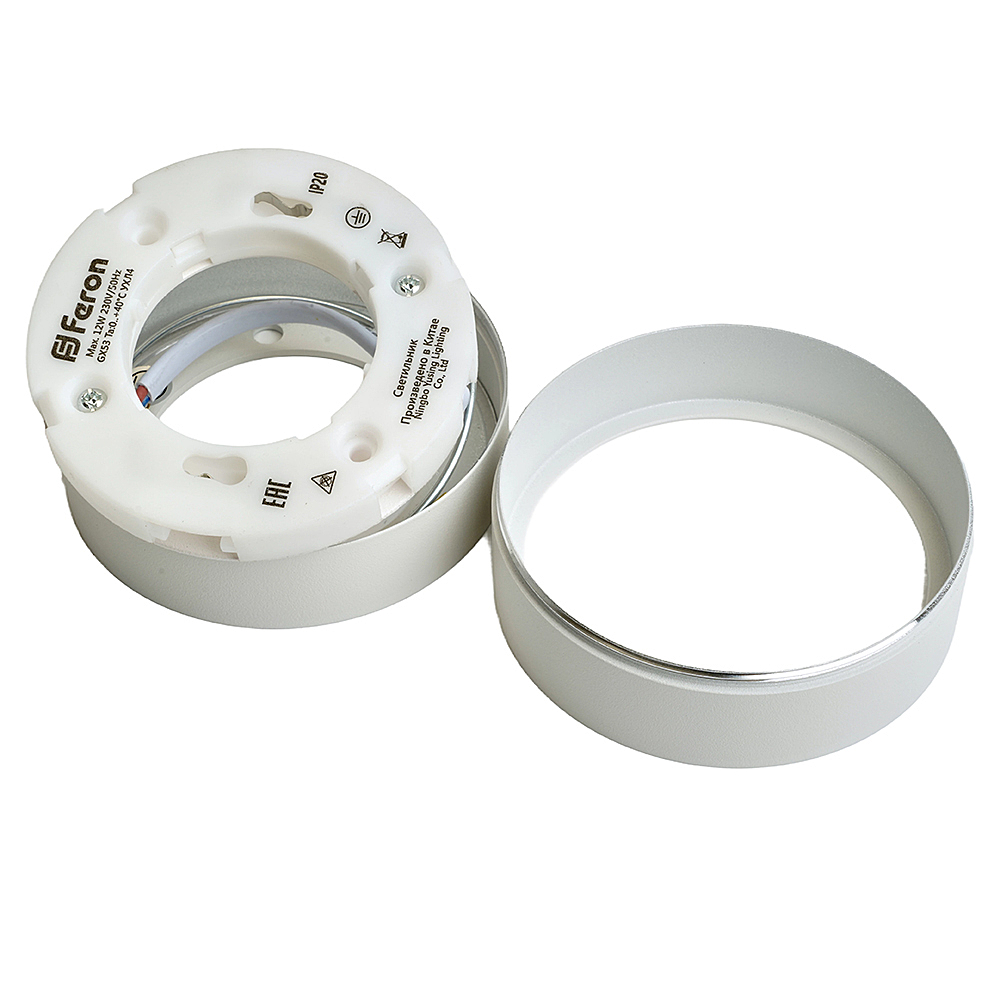 Светильник накладной под лампу, спот (ИПО) FERON HL357, GX53 12W, 230V, IP20, цвет белый, корпус алюминий, 82*82*40