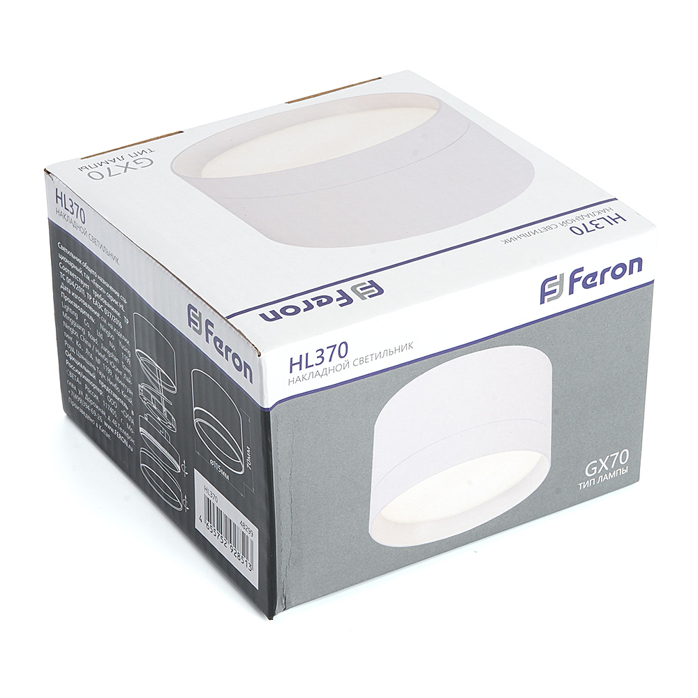 Светильник накладной под лампу, спот (ИПО) FERON HL370, GX70 25W, 230V, IP20, цвет белый, корпус алюминий, патрон PBT, 115*115*70