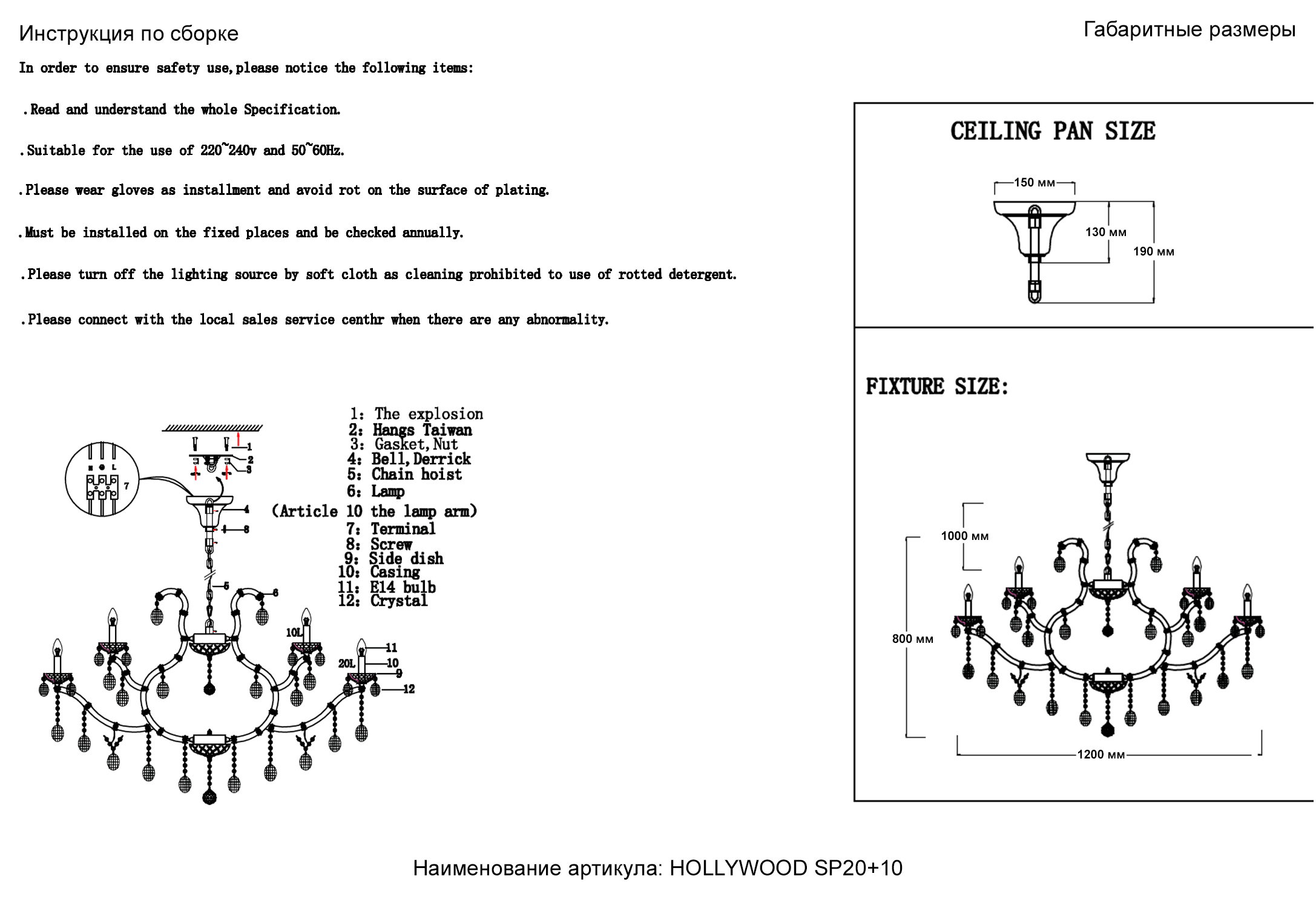 Допускается отличие страны-изготовителя, указанной в характеристиках. Линии производства могут находиться в нескольких государствах. Это не влияет на качество изготовления товара: все заводы данного бренда работают по общим стандартам, а готовые изделия проходят соответствующий контроль.Испания Коллекция Hollywood ЦветЦвет арматуры Хром, Прозрачный Цвет Прозрачный Материал арматуры Стекло, Металл Цвет декора прозрачный Материал декора Хрусталь РазмерыВысота (мм) 1800 Диаметр (мм) 1200 Высота минимальная (мм) 800 Ширина (мм) 1200 ЭлектрикаКоличество ламп (шт) 30 Цоколь E14 Мощность лампы (Вт) 40 Напряжение (В) 220 Дополнительная информацияСтепень защиты (IP) 20 Вес (Кг) 41,00 Тип подвеса На цепи -