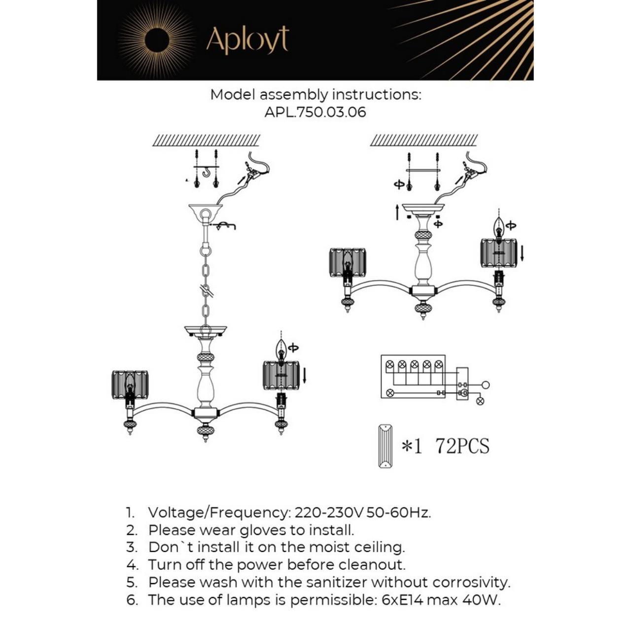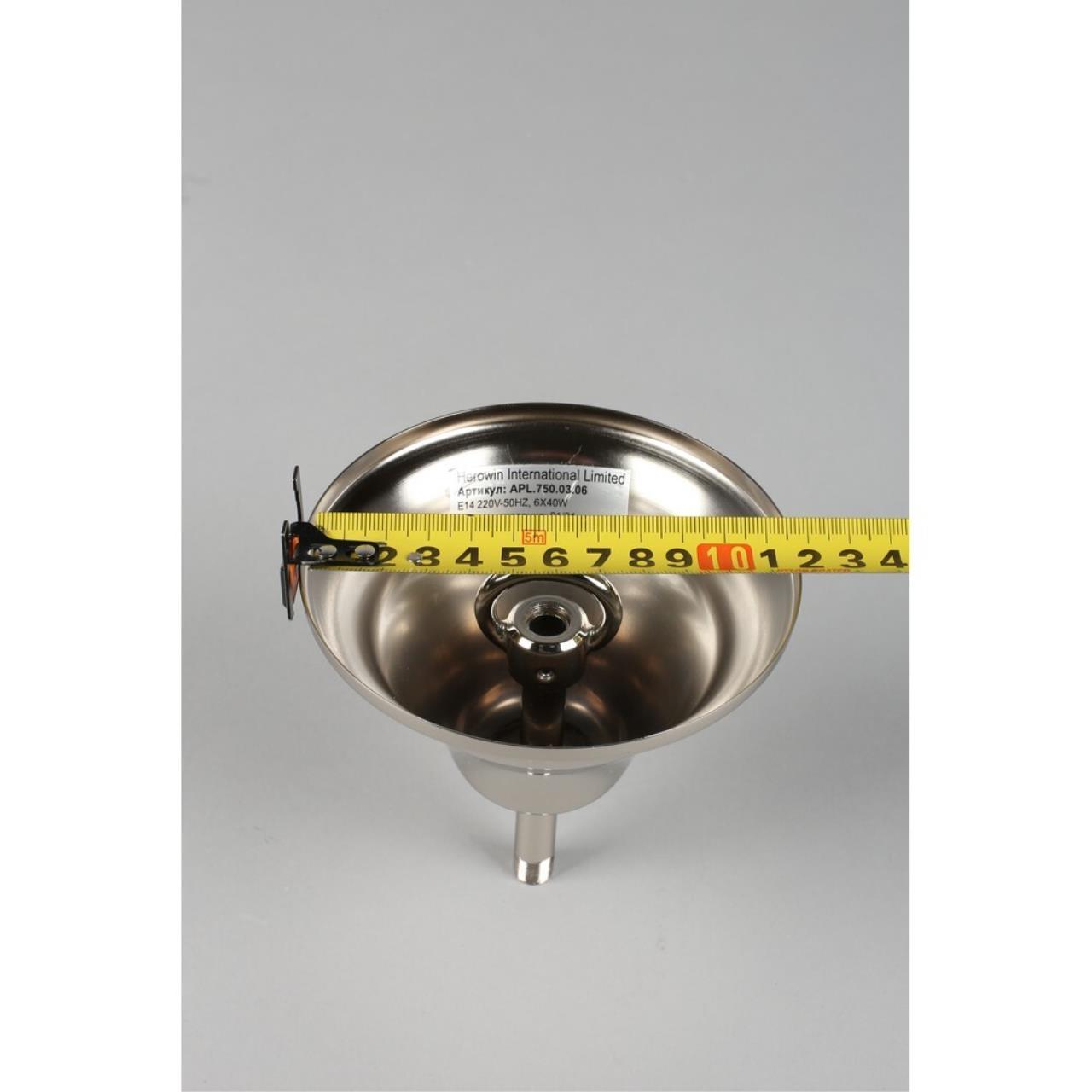 Допускается отличие страны-изготовителя, указанной в характеристиках. Линии производства могут находиться в нескольких государствах. Это не влияет на качество изготовления товара: все заводы данного бренда работают по общим стандартам, а готовые изделия проходят соответствующий контроль.Польша Коллекция Hortens ЦветЦвет арматуры Хром Цвет Хром Материал арматуры Металл Цвет декора прозрачный Цвет плафона прозрачный Материал декора Хрусталь Материал плафона Хрусталь РазмерыВысота (мм) 1400 Диаметр (мм) 670 Высота минимальная (мм) 420 Ширина (мм) 670 ЭлектрикаКоличество ламп (шт) 6 Цоколь E14 Лампочки в комплекте Нет в комплекте Мощность лампы (Вт) 40 Общая мощность (Вт) 240 Световой поток 2520 Дополнительная информацияСпособ крепления Крюк Вес (Кг) 8.3 Тип подвеса На цепи -