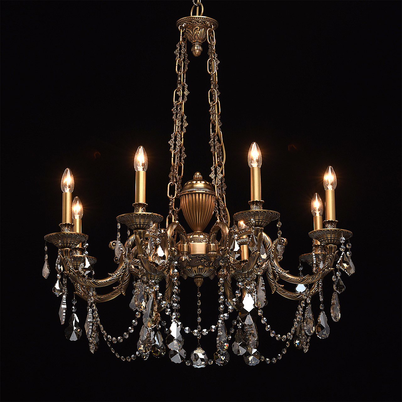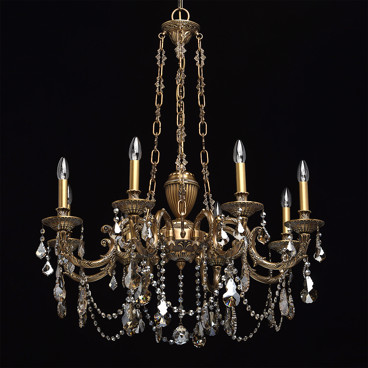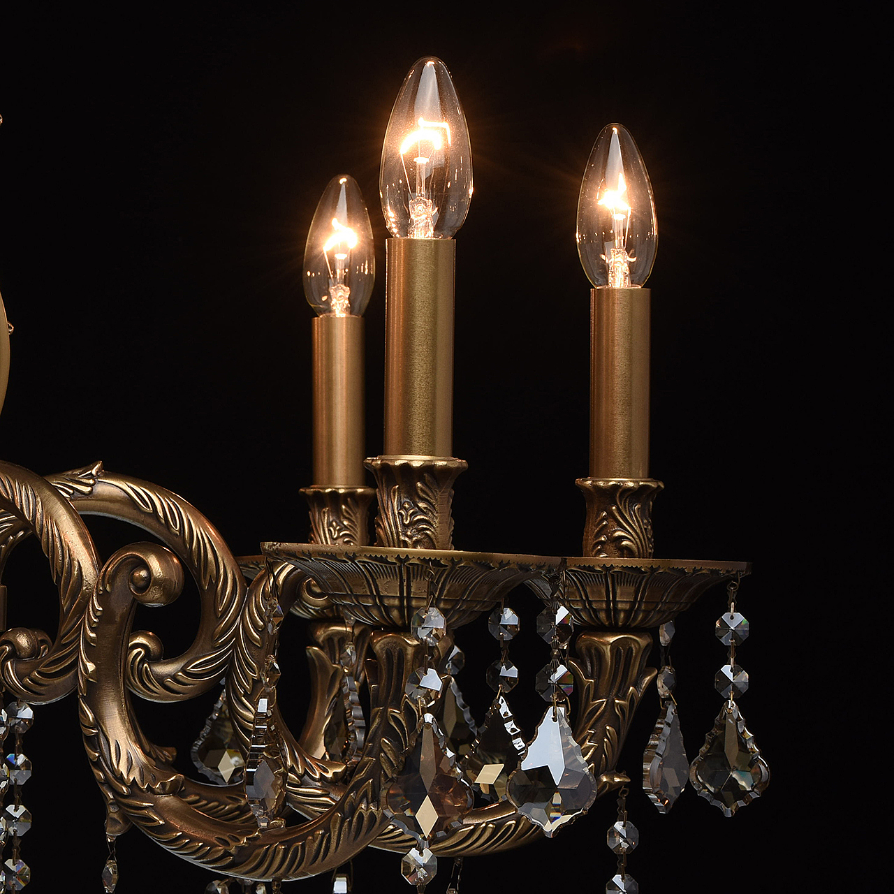 Основание и декоративные элементы из бронзы, высококачественный хрусталь цвета топаза.