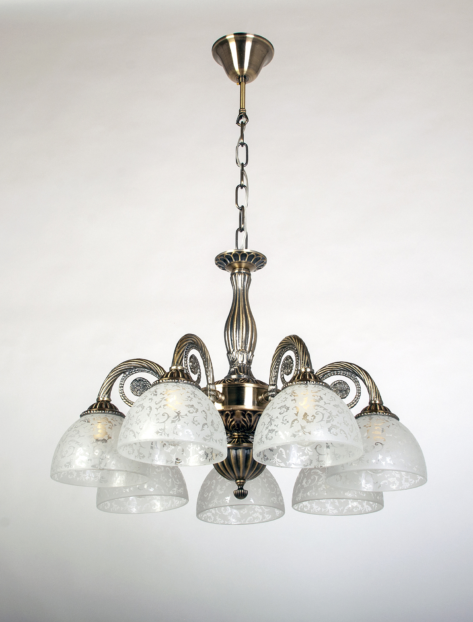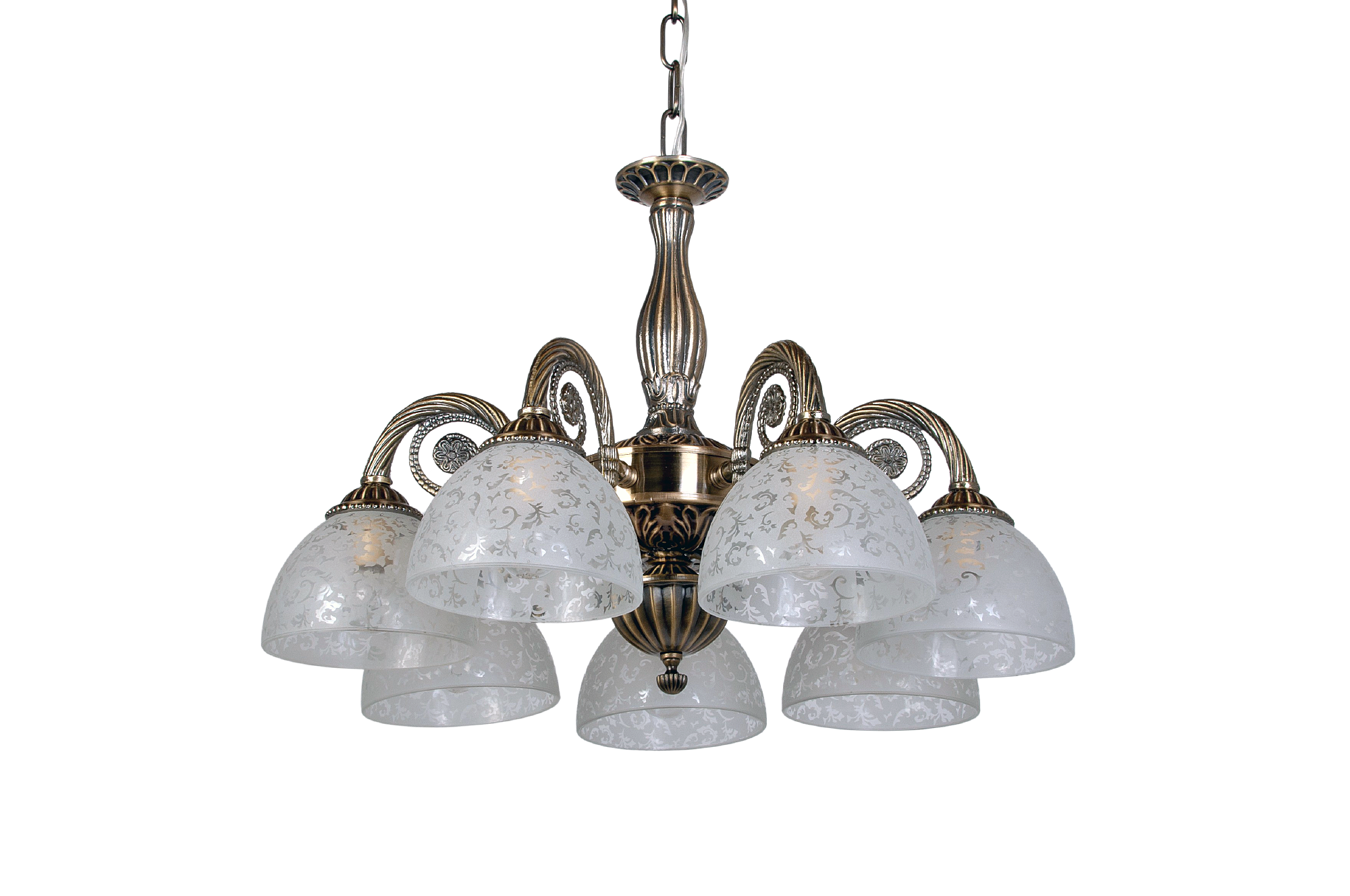 Допускается отличие страны-изготовителя, указанной в характеристиках. Линии производства могут находиться в нескольких государствах. Это не влияет на качество изготовления товара: все заводы данного бренда работают по общим стандартам, а готовые изделия проходят соответствующий контроль.Германия ЦветЦвет арматуры Бронза Цвет Бронза Материал арматуры Металл Цвет плафона белый матовый Материал плафона Стекло РазмерыВысота (мм) 450 Диаметр (мм) 600 Ширина (мм) 600 ЭлектрикаКоличество ламп (шт) 7 Цоколь E14 Тип лампы Светодиодная, Накаливания Мощность лампы (Вт) 40 Напряжение (В) 220 Площадь освещения 21 Дополнительная информацияСпособ крепления Крюк Степень защиты (IP) IP20 Место установки на потолок Тип подвеса На цепи -