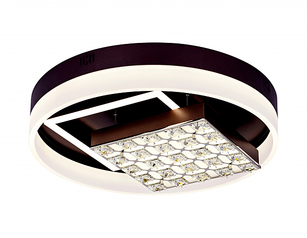 Потолочный светодиодный светильник из серии ACRYLICA, коллекция Ice. Великолепная модель FA145 выполнена в современном стиле Неоклассика. Бесподобный хрустальный декор придает особый шик светильникам этой коллекции. Эта модель круглой формы, кофейного цвета, с окантовкой из акрила и металлического корпуса. Благодаря встроенным в конструкцию светодиодам, вы можете с уверенностью забыть о поиске или замене дополнительных ламп. С помощью мобильного приложения, а так же радиоуправляемого пульта вы сможете регулировать цветовую температуру, яркость освещения и ночной режим. Модель FA145 подходит для натяжных потолков и будет прекрасным дополнением в гостиной, спальне или детской комнате.