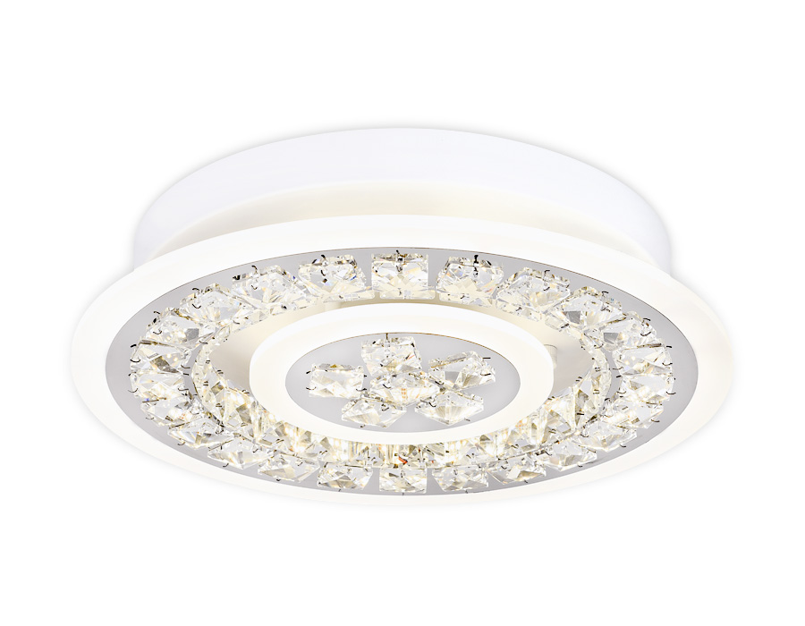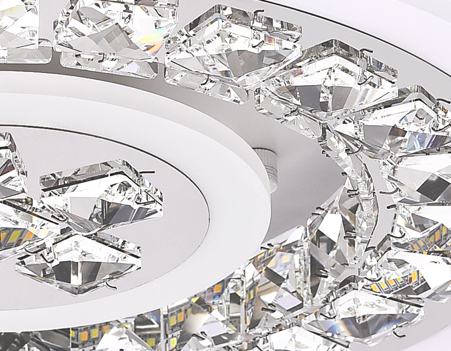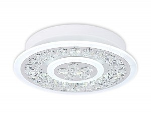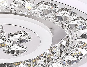 Потолочный светодиодный светильник из серии ACRYLICA, коллекция Ice. Великолепная модель FA153 выполнена в современном стиле Неоклассика. Бесподобный хрустальный декор придает особый шик светильникам этой коллекции. Эта модель круглой формы, белого цвета, с окантовкой из акрила и металлического корпуса. Благодаря встроенным в конструкцию светодиодам, вы можете с уверенностью забыть о поиске или замене дополнительных ламп. С помощью мобильного приложения, а так же радиоуправляемого пульта вы сможете регулировать цветовую температуру, яркость освещения и ночной режим. Модель FA153 подходит для натяжных потолков и будет прекрасным дополнением в гостиной, спальне или детской комнате.