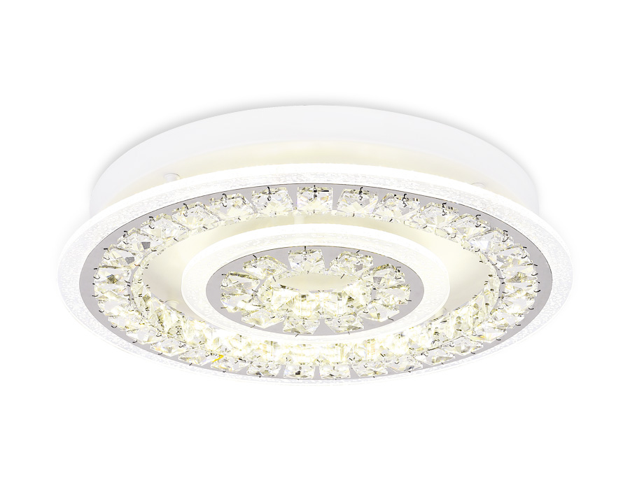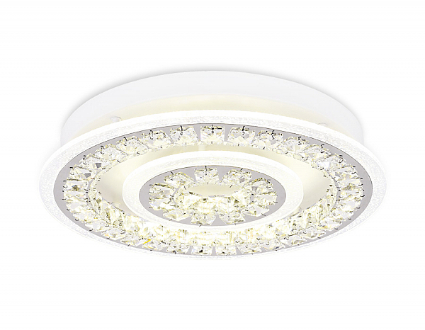 Потолочный светодиодный светильник из серии ACRYLICA, коллекция Ice. Великолепная модель FA154 выполнена в современном стиле Неоклассика. Бесподобный хрустальный декор придает особый шик светильникам этой коллекции. Эта модель круглой формы, белого цвета, с окантовкой из акрила и металлического корпуса. Благодаря встроенным в конструкцию светодиодам, вы можете с уверенностью забыть о поиске или замене дополнительных ламп. С помощью мобильного приложения, а так же радиоуправляемого пульта вы сможете регулировать цветовую температуру, яркость освещения и ночной режим. Модель FA154 подходит для натяжных потолков и будет прекрасным дополнением в гостиной, спальне или детской комнате.