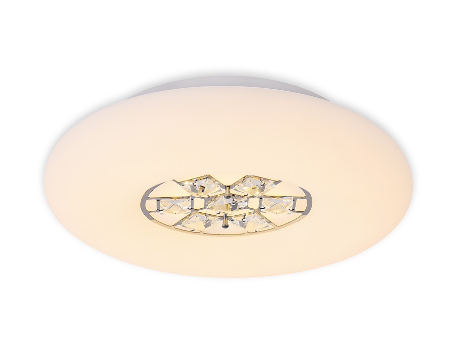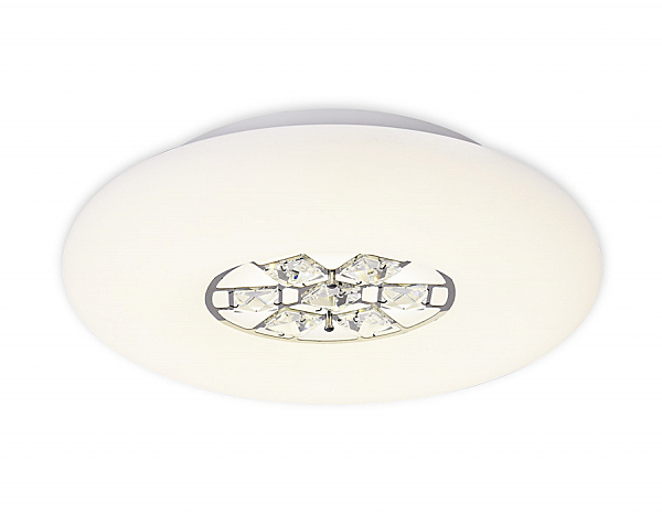 Потолочный светодиодный светильник из серии ACRYLICA, коллекция Ice. Великолепная модель FA158 выполнена в современном стиле Неоклассика. Бесподобный хрустальный декор придает особый шик светильникам этой коллекции. Эта модель круглой формы, белого цвета, пластиковый плафон и металлический корпус. Благодаря встроенным в конструкцию светодиодам, вы можете с уверенностью забыть о поиске или замене дополнительных ламп. С помощью мобильного приложения, а так же радиоуправляемого пульта вы сможете регулировать цветовую температуру, яркость освещения и ночной режим. Модель FA158 подходит для натяжных потолков и будет прекрасным дополнением в гостиной, спальне или детской комнате.