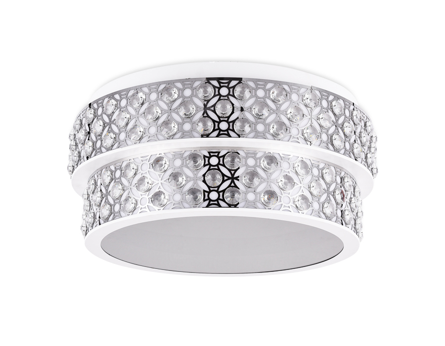 Потолочный светодиодный светильник из коллекции ACRYLICA Ice. Великолепная модель FA9438 выполнена в современном стиле Неоклассика. Бесподобный хрустальный декор придает особый шик светильникам этой коллекции. Эта модель круглой формы, металлический корпус цвета хром, с окантовкой из белого акрила. Благодаря встроенным в конструкцию светодиодам, вы можете с уверенностью забыть о поиске или замене дополнительных ламп. С помощью мобильного приложения, а так же радиоуправляемого пульта вы сможете регулировать цветовую температуру, яркость освещения и ночной режим. Эта модель подходит для натяжных потолков и будет прекрасным дополнением в гостиной, спальне или детской комнате.