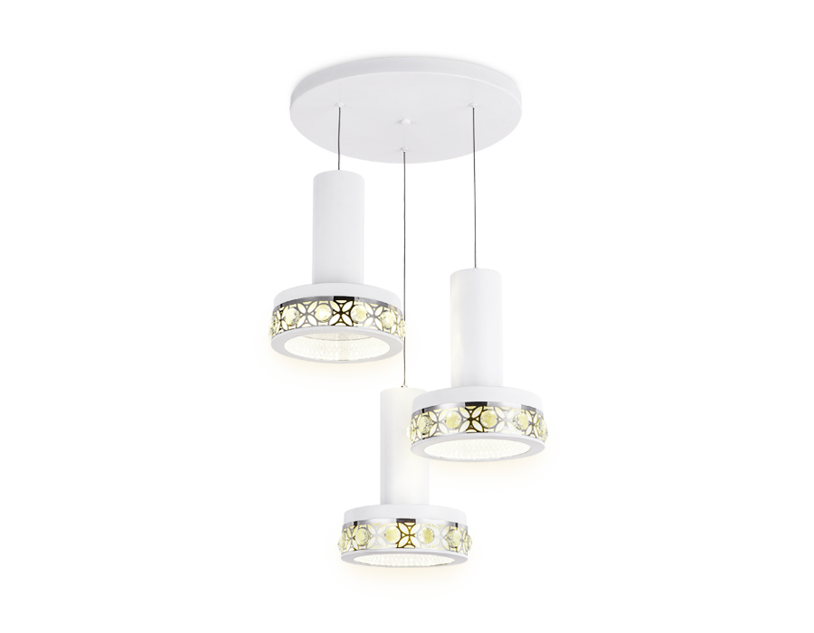 Подвесной светодиодный светильник из коллекции ACRYLICA Ice. Великолепная модель FA9492 выполнена в современном стиле Неоклассика. Бесподобный хрустальный декор придает особый шик светильникам этой коллекции. Эта модель состоит из трех плафонов, круглой формы, металлический корпус белого цвета. Благодаря встроенным в конструкцию светодиодам, вы можете с уверенностью забыть о поиске или замене дополнительных ламп. Эта модель подходит для натяжных потолков и будет прекрасным дополнением в гостиной, спальне или детской комнате.