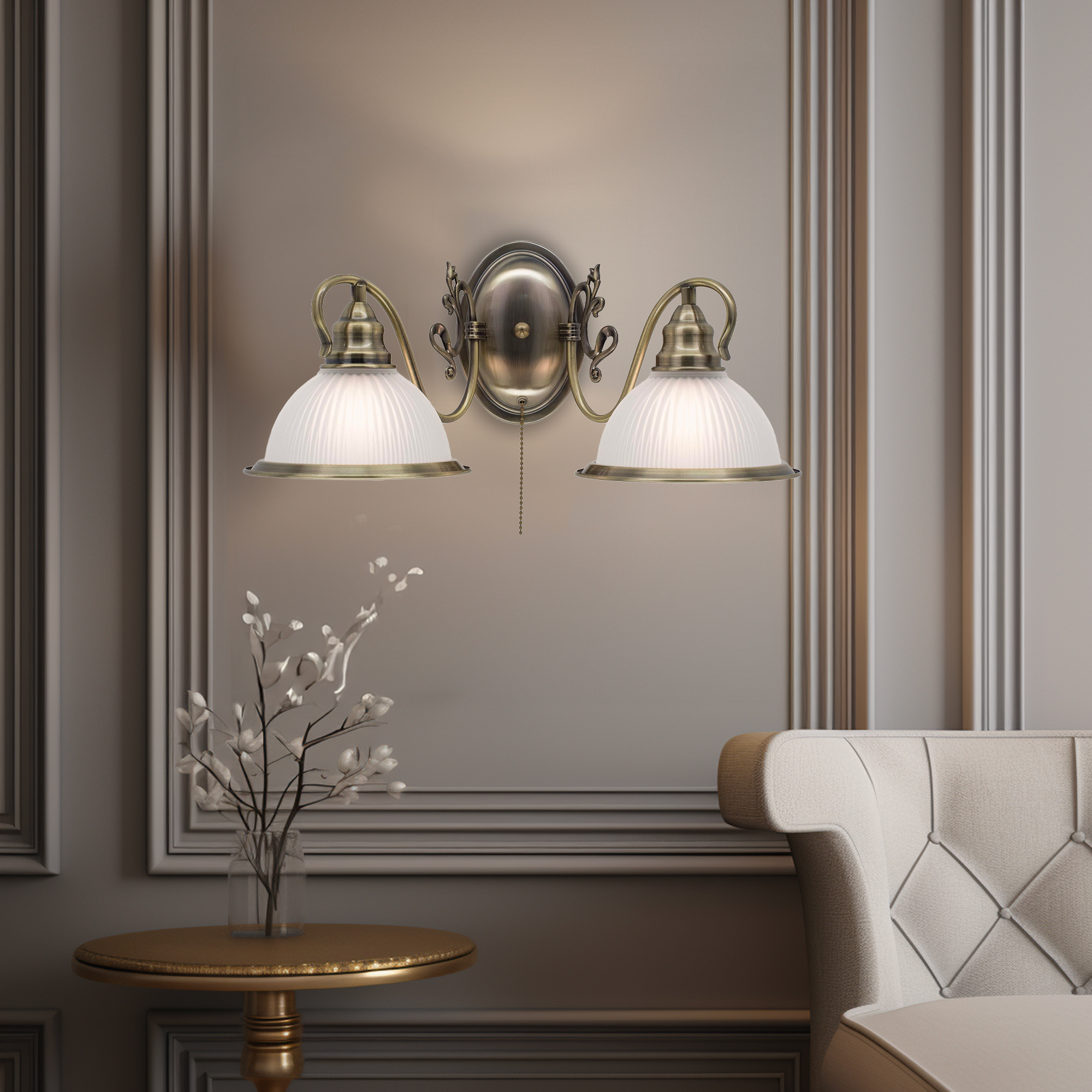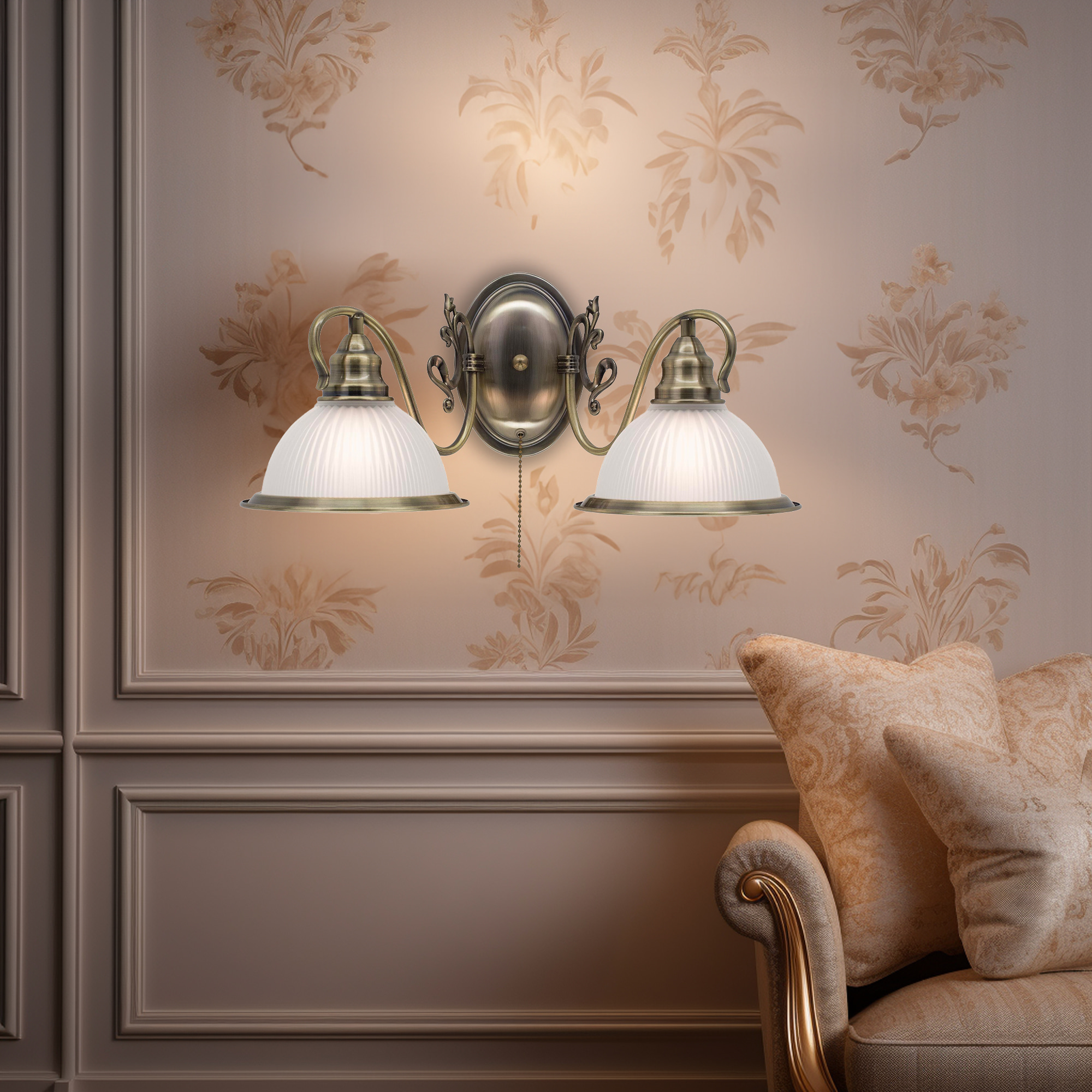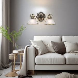 Допускается отличие страны-изготовителя, указанной в характеристиках. Линии производства могут находиться в нескольких государствах. Это не влияет на качество изготовления товара: все заводы данного бренда работают по общим стандартам, а готовые изделия проходят соответствующий контроль.Дания Коллекция Идальго ЦветЦвет арматуры Бронза Цвет Бронза Материал арматуры Металл Цвет плафона Белый Материал плафона Стекло РазмерыВысота (мм) 220 Ширина (мм) 480 Глубина (мм) 220 ЭлектрикаКоличество ламп (шт) 2 Цоколь E27 Тип лампы Накаливания, Светодиодные, Компактные люмин. Мощность лампы (Вт) 75W Общая мощность (Вт) 150 Напряжение (В) 220 Площадь освещения 7 Дополнительная информацияСпособ крепления Планка Степень защиты (IP) IP20 Тип выключателя Сонетка (шнурок) Вес (Кг) 2.100 Техническая оссобеность С выключателем -