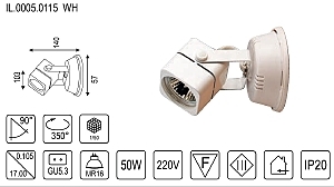 Допускается отличие страны-изготовителя, указанной в характеристиках. Линии производства могут находиться в нескольких государствах. Это не влияет на качество изготовления товара: все заводы данного бренда работают по общим стандартам, а готовые изделия проходят соответствующий контроль.Германия Коллекция Il.0005.01-02 ЦветЦвет арматуры Белый Цвет Белый Материал арматуры Металл РазмерыВысота (мм) 135 Длина (мм) 85 Диаметр (мм) 57 Ширина (мм) 57 ЭлектрикаКоличество ламп (шт) 1 Цоколь GU5.3 Лампочки в комплекте Нет в комплекте Мощность лампы (Вт) 50 Общая мощность (Вт) 50 Напряжение (В) 220 Дополнительная информацияТехническая оссобеность Поворотный -
