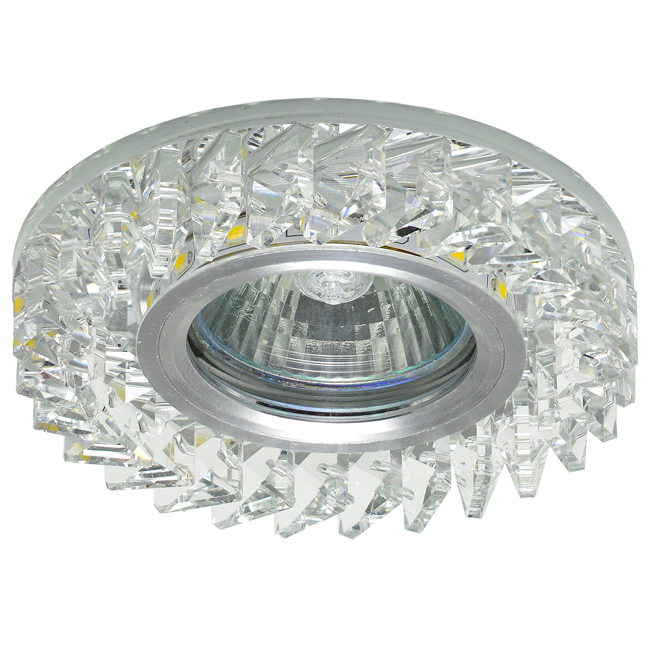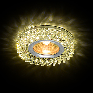 Светильник IL.0026.0103 с декоративным хрустальным элементом с наборными кристаллами со светодиодной подсветкой ? новый тренд в декоративном освещении помещения и формировании комфортного светового пространства для жизни. Светодиодную подсветку светильника можно использовать как одновременно с основным источником света, так и включать отдельно, создавая приглушенную мягкую освещенность пространства. В качестве основного света рекомендуем использовать галогенную лампу MR16 мощностью не более 35 Ватт.