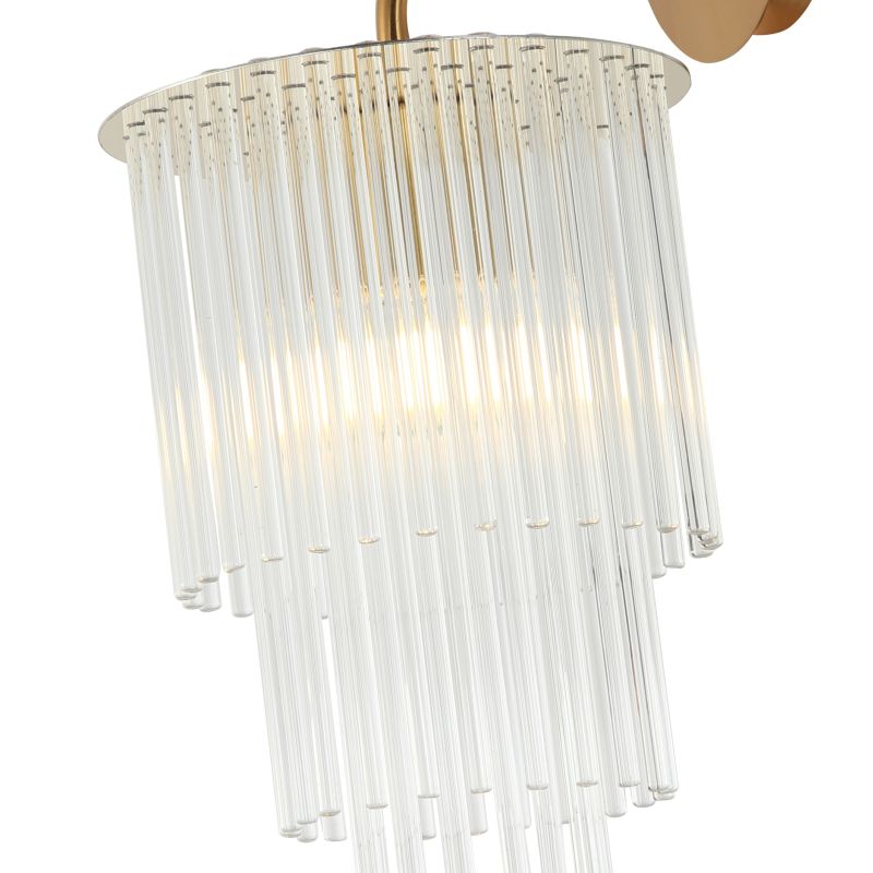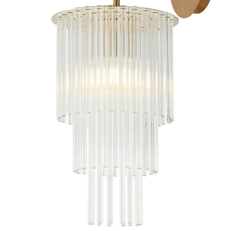 Светильник настенный из коллекции Imposio выполнен из металла, гальванизированного в цвет бронзы. Декор из стеклянных прозрачных трубочек крепится на нержавеющую сталь, отполированную до зеркального блеска. Современная форма и высокое качество светильников идеально подойдут в современные и дизайнерские интерьеры.