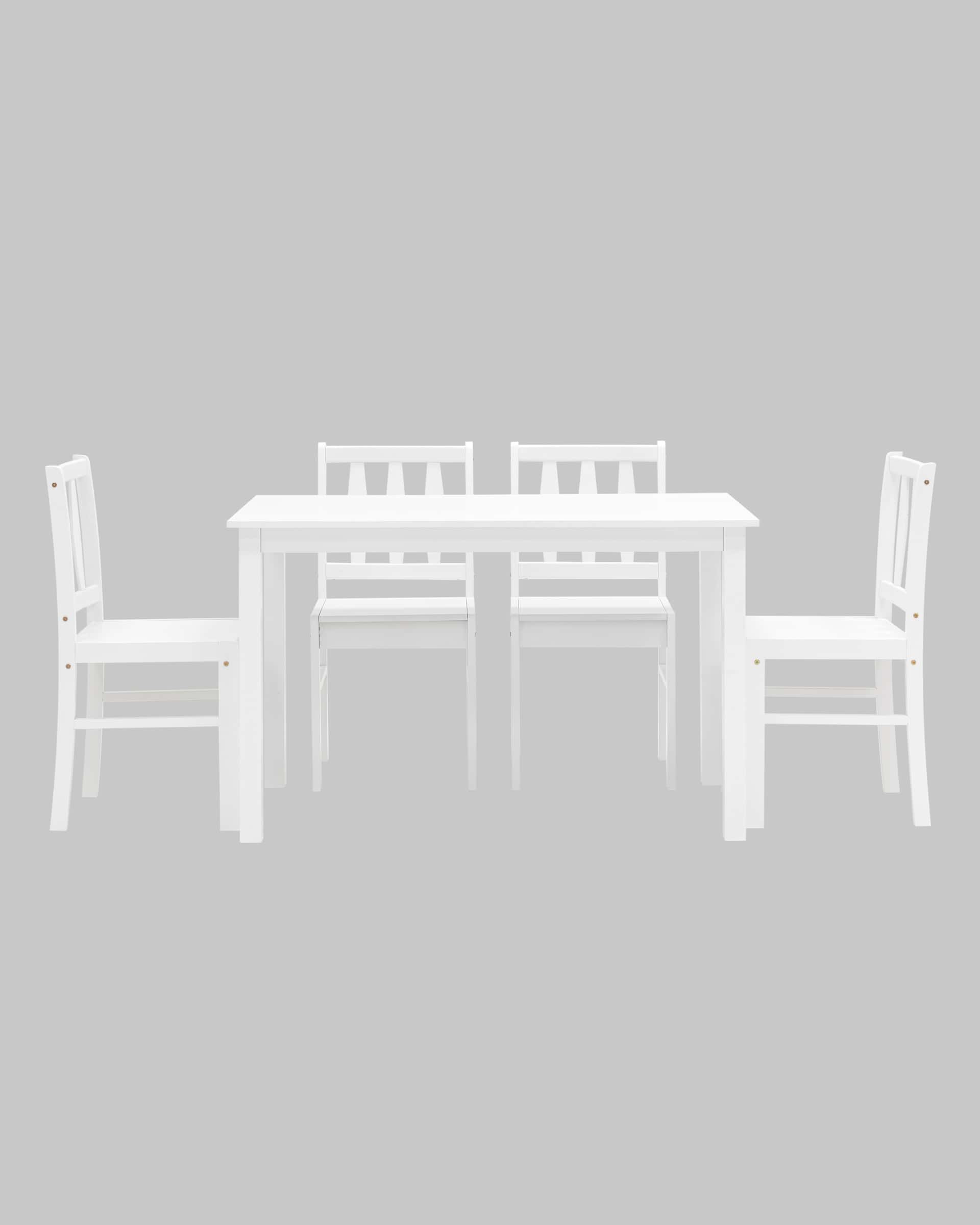 Комплект обеденный INGRID из стола и четырех стульев деревянные, ножки стола и каркас стульев из массива гевеи