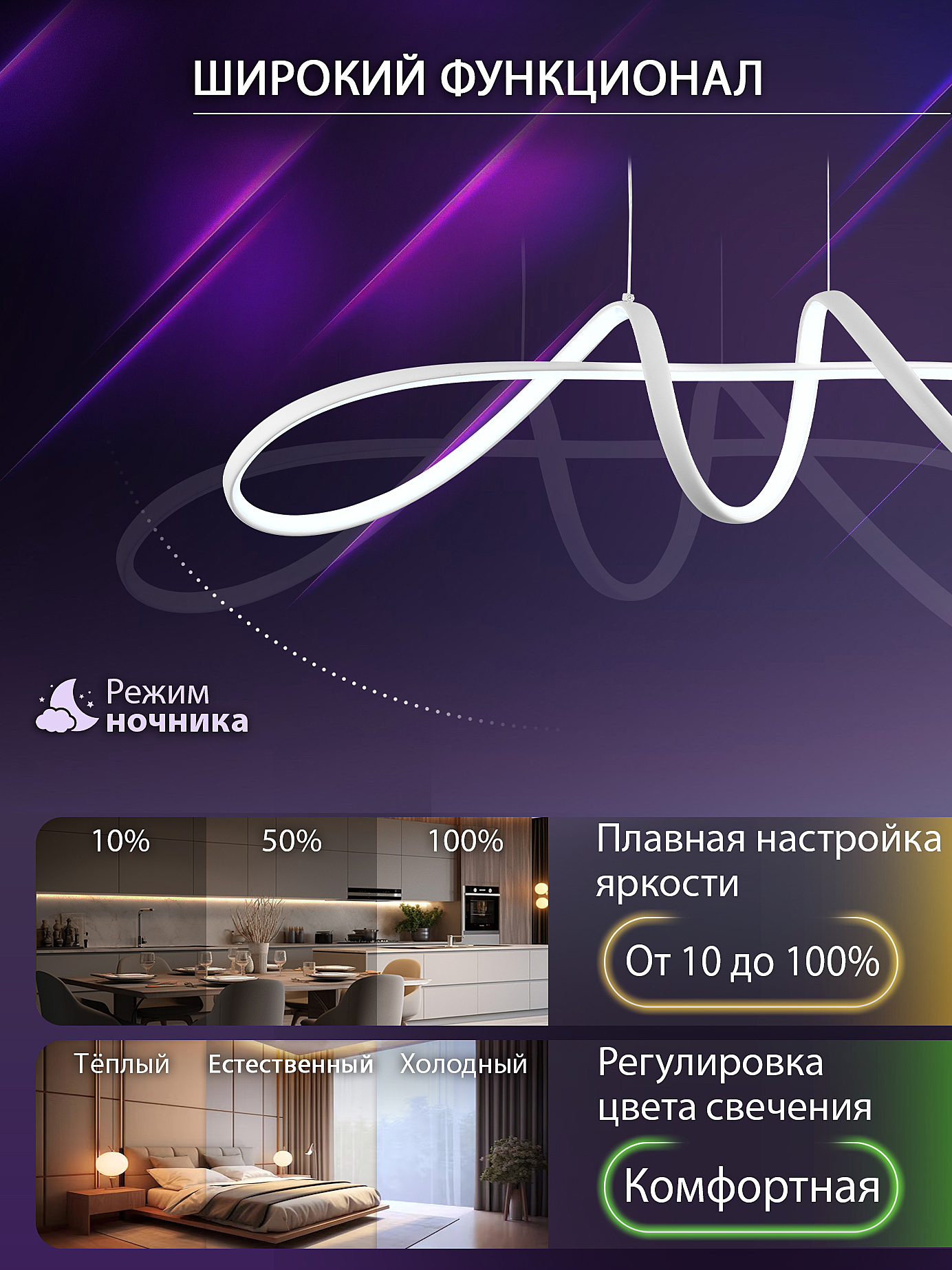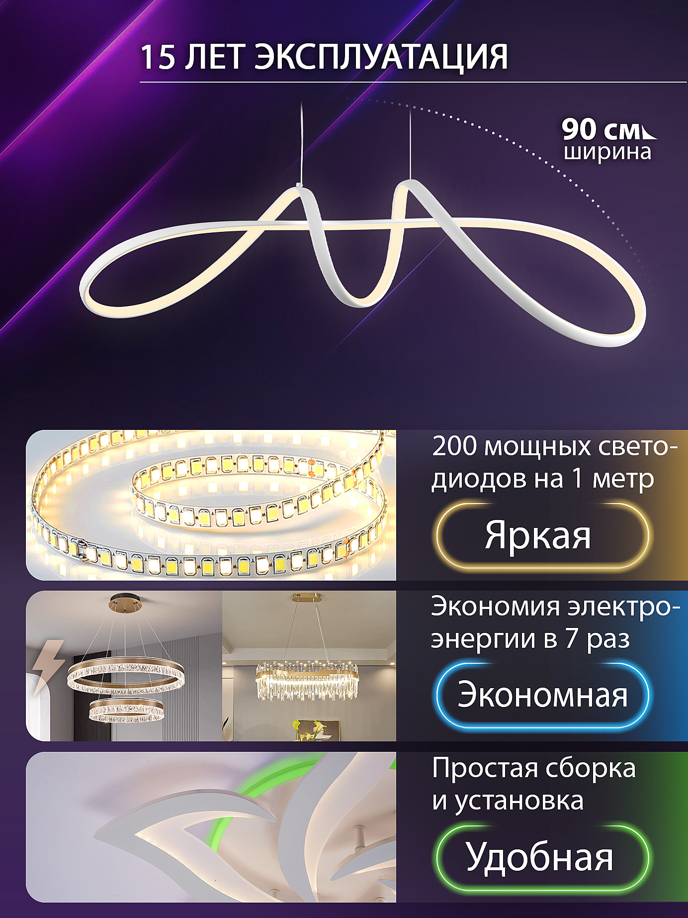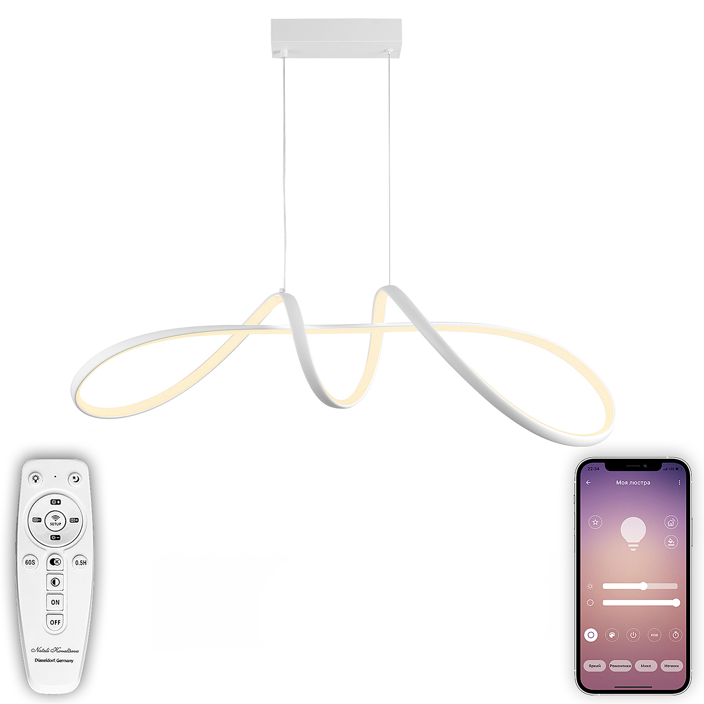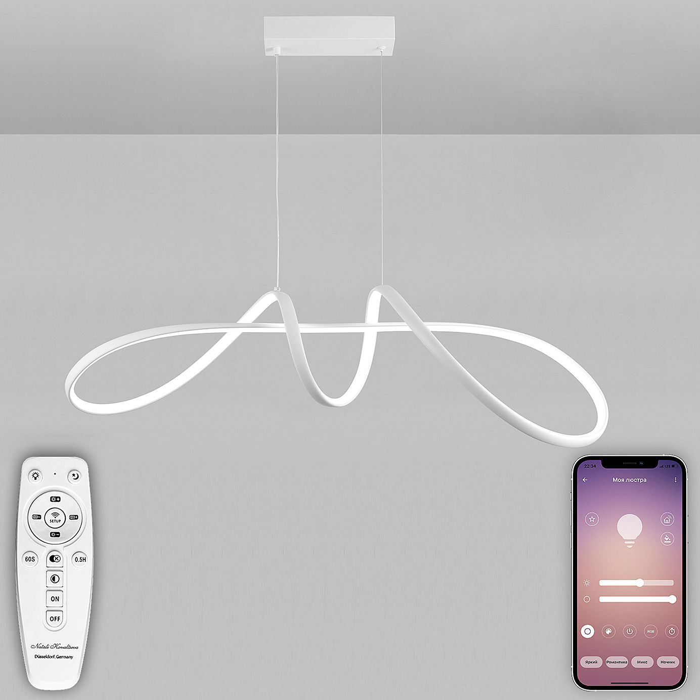 Допускается отличие страны-изготовителя, указанной в характеристиках. Линии производства могут находиться в нескольких государствах. Это не влияет на качество изготовления товара: все заводы данного бренда работают по общим стандартам, а готовые изделия проходят соответствующий контроль.Австрия ЦветЦвет арматуры Белый Цвет Белый Материал арматуры Алюминий Цвет плафона Белый Материал плафона Силикон РазмерыВысота (мм) 1730 Длина (мм) 270 Высота минимальная (мм) 230 Ширина (мм) 900 ЭлектрикаЦоколь LED Тип лампы Светодиодная Мощность лампы (Вт) 100 Общая мощность (Вт) 100 Световой поток 6000 Цветовая температура 3000, 6500, 4300 Площадь освещения 17 Дополнительная информацияСпособ крепления Планка Вес (Кг) 1,2 Техническая оссобеность Ночной режим, Таймер, Регулировка яркости, Регулировка цветовой температуры Тип подвеса На тросах Тип управления Пульт ДУ, Управление смартфоном -