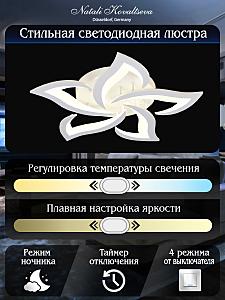 Люстра потолочная светодиодная с пультом ДУ от бренда Natali Kovaltseva представляет собой современное и функциональное решение для освещения вашего дома. Светильник выполнен в стиле хай-тек, который хорошо сочетается с современным интерьером, а также может стать отличным дополнением к классическому или модернистскому дизайну.Люстра оснащена светодиодными лампами, что обеспечивает высокую энергоэффективность и долговечность. Общая мощность 80W со световым потоком 6400 lm позволяет осветить до 18 кв.м. Благодаря пульту дистанционного управления, вы можете легко регулировать яркость света, а также выбирать желаемый цвет освещения (теплый, холодный, нейтральный), создавая идеальную атмосферу в любой комнате.Данный светильник идеально подходит для различных помещений, таких как кухня, спальня, гостиная, детская или игровая комната, а также для балкона, коридора. Он легко устанавливается на любой тип потолка, включая натяжной, и имеет скрытый тип монтажа, что делает его универсальным решением для любого интерьера. Люстра станет отличным решением как для низкого потолка, так и для высокого.Люстра выполнена из металла и акрила, что обеспечивает ей прочность и долговечность. Производитель предоставляет расширенную гарантию 3 года. Степень пылевлагозащиты IP20 гарантирует, что светильник будет хорошо работать в обычных условиях использования. Срок службы светодиодов составляет 50 000 часов, что является отличным показателем качества. Выбирая эту люстру, вы получаете не только качественное и эффективное освещение, но и возможность создавать уникальную атмосферу в вашем доме.