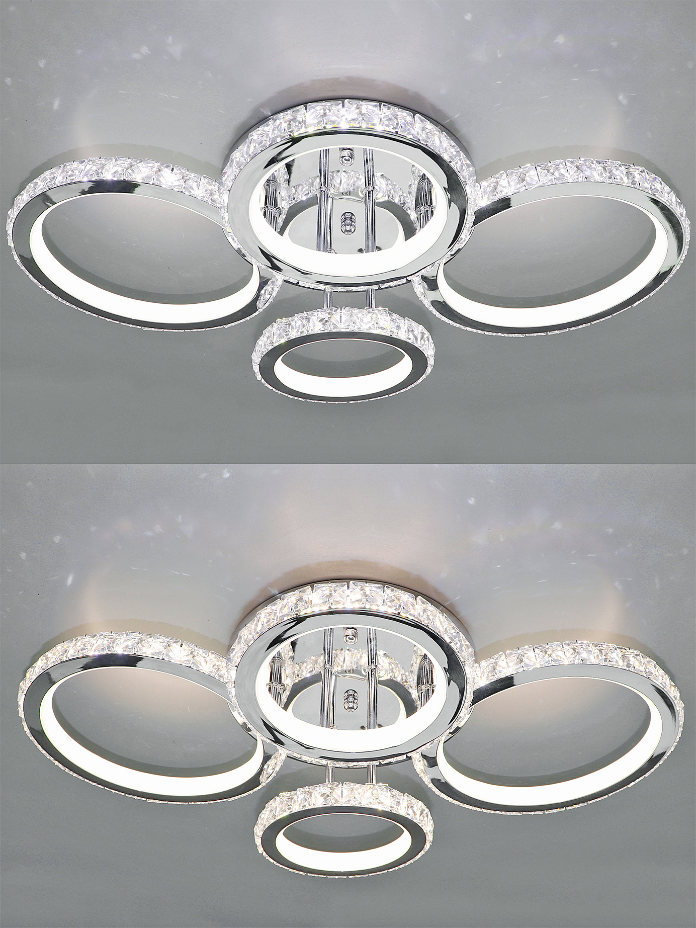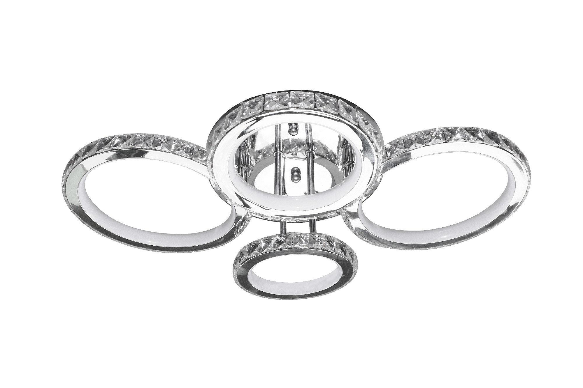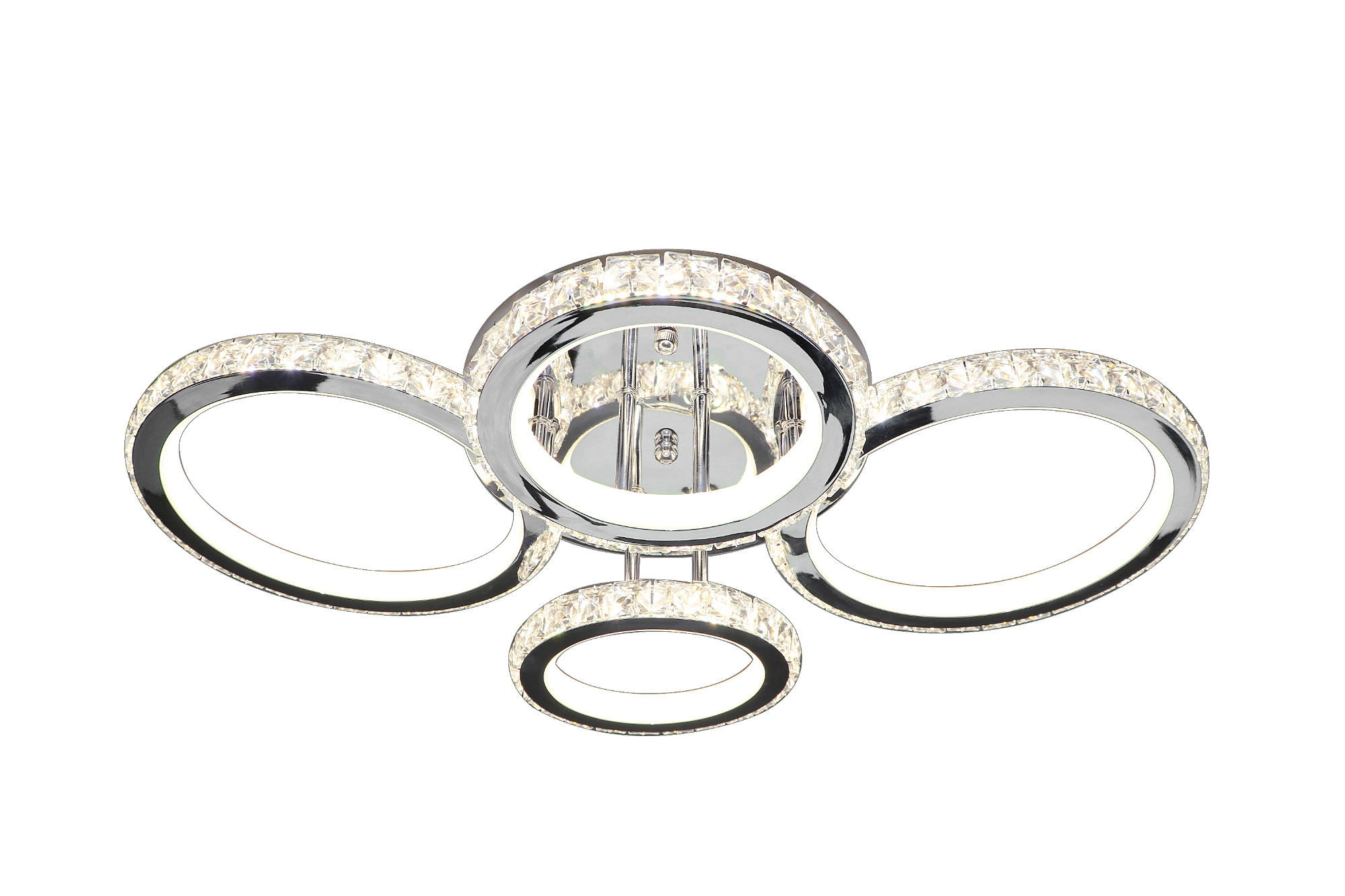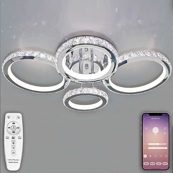 Светодиодный светильник с дистанционным управлением через пульт ДУ, смартфон, планшет. Лицевую часть составляют равноудалённые друг от друга рожки округлой формой с хрусталём по контору. По их периметру расположена подсветка, а акрил обеспечивает отличное рассеивание света. Дизайн люстры выполнен в современном стиле в цвете хром и отлично подойдёт в любой интерьер. Люстра имеет тёплый, естественный и холодный свет с регулировкой температуры свечения. Обладает плавной настройкой яркости в диапазоне от 10% до 100%. Имеется режим ночника и таймер отключения. Кроме того, от стандартного выключателя люстра имеет 4 режима свечения. Данные функции делают светильник оптимальным в процессе использования. Общая мощность 160W со световым потоком 12800 lm позволяет осветить до 25 кв.м. Он прост в сборке, установке и экономичен в обслуживании. Люстра подойдёт для всех видов потолков. Цветовая температура настраивается от 2700 до 7000 K. Степень защиты 20 IP.