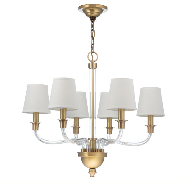 Люстра подвесная Cloyd INSIGNIA (Клойд Инсигния) C6 / арт.10473, ø: 73 см. высота: 64 см (подвес в комплекте - до 50 см), источник света: E14 (LED ≈ 6 Вт) х 6 шт, цвет металла - латунь.